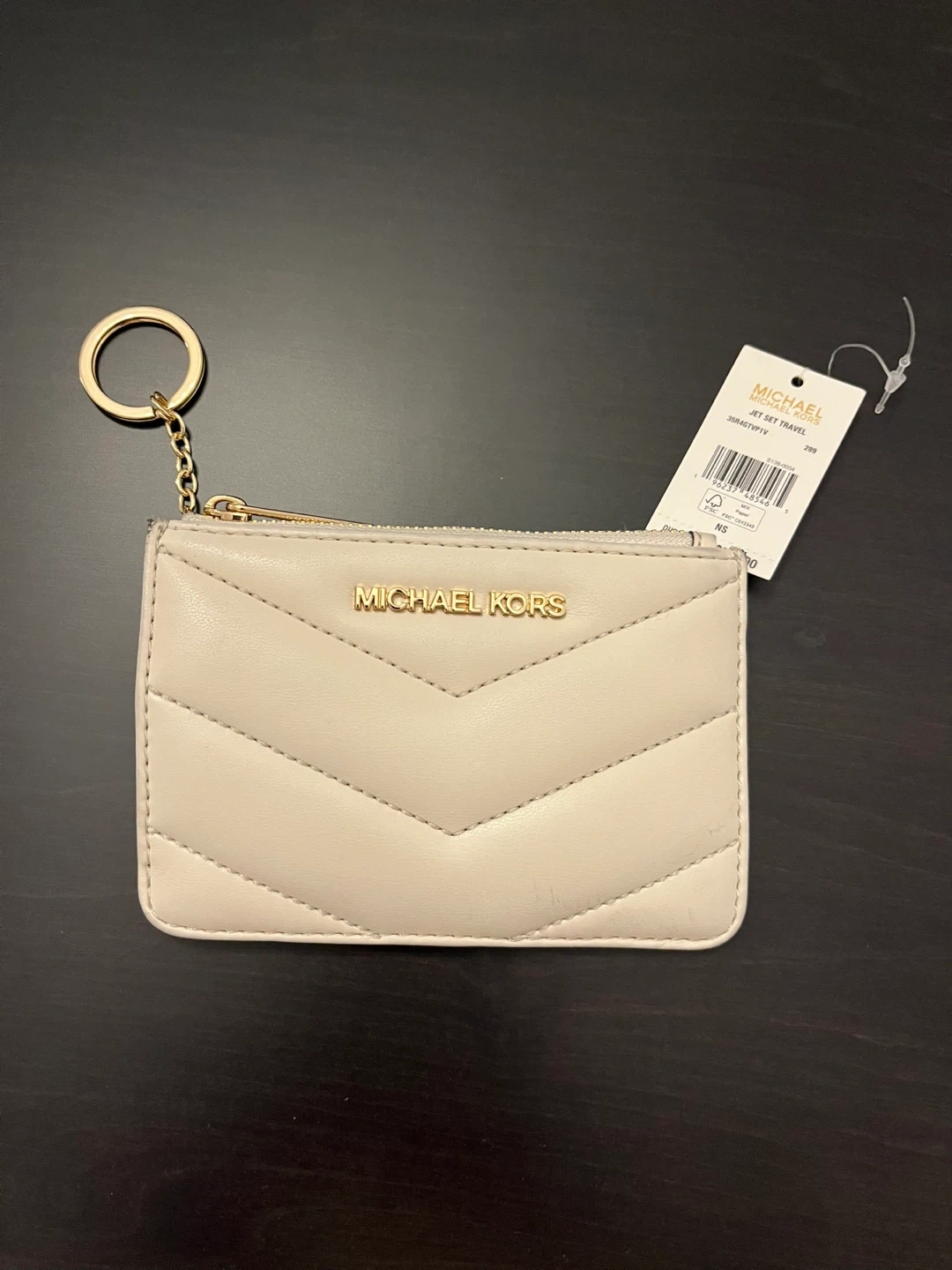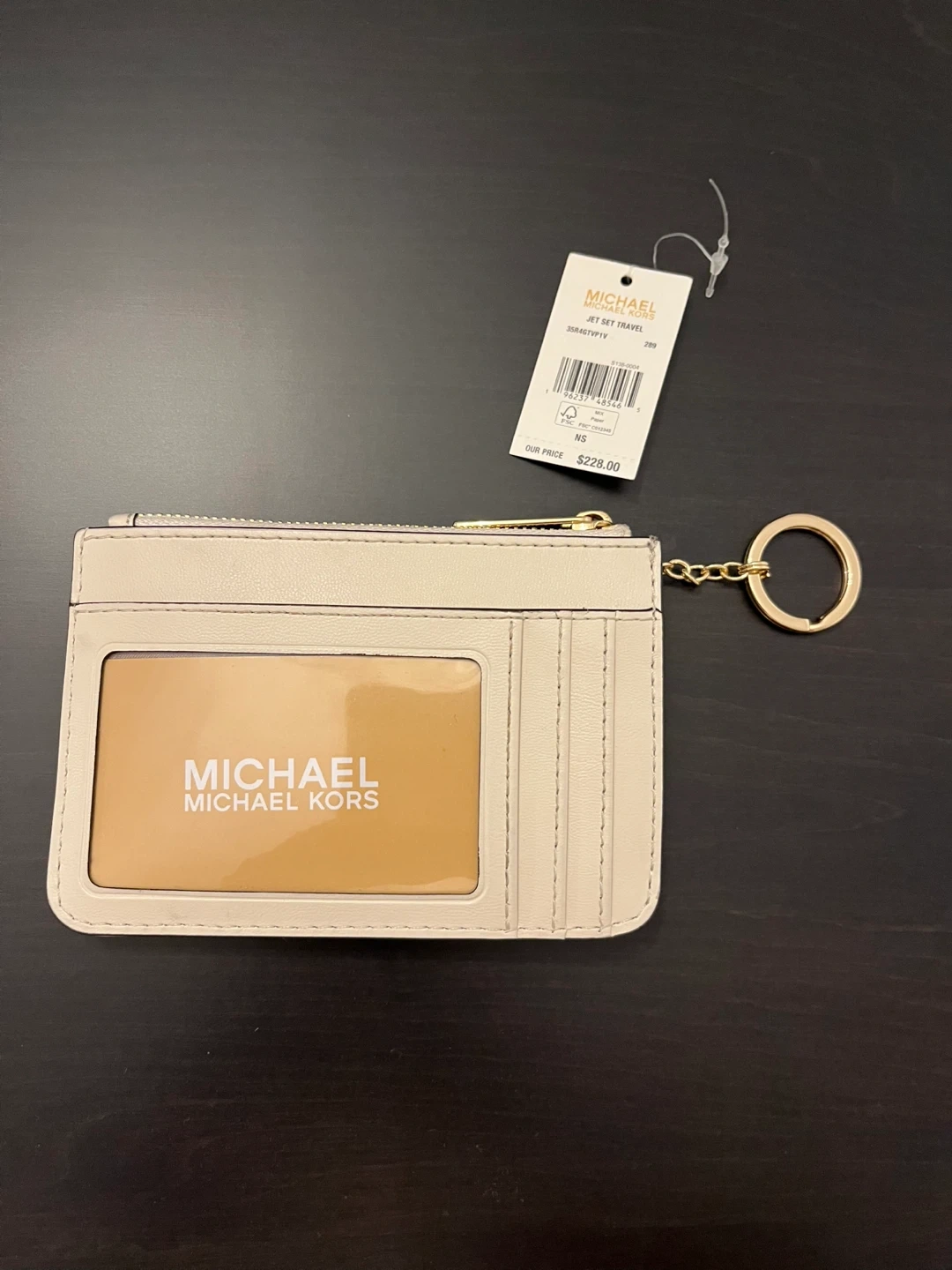 This is a Michael Kors Jet Set Travel card holder in a lovely neutral colour. It features a zip compartment and several card slots, perfect for keeping your essentials organized. Used about 5 times