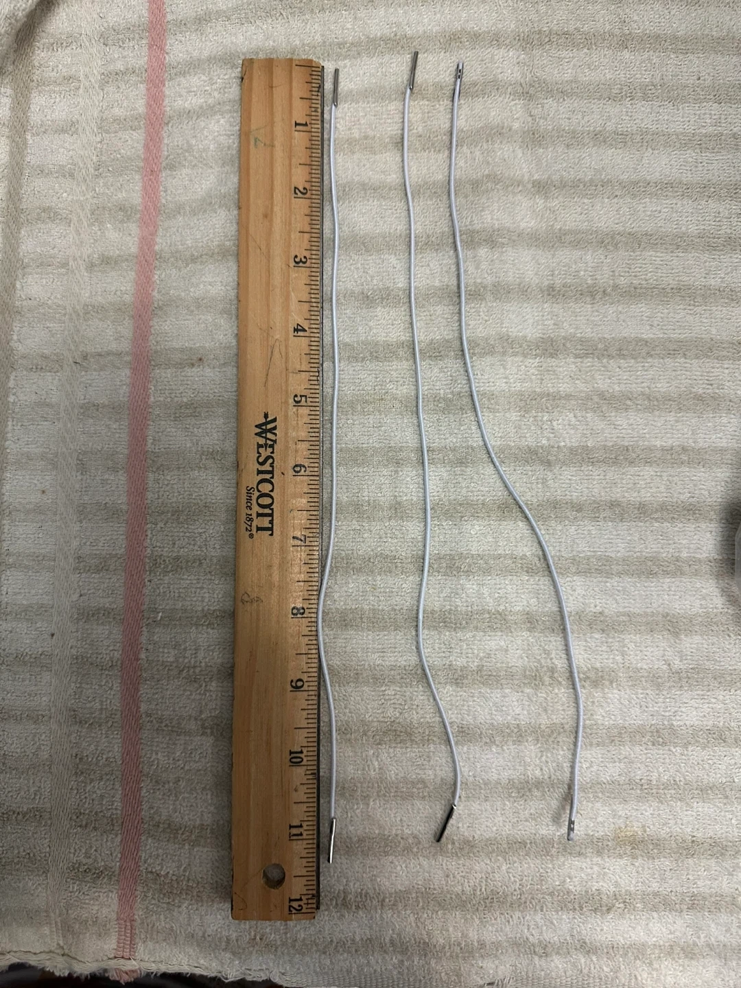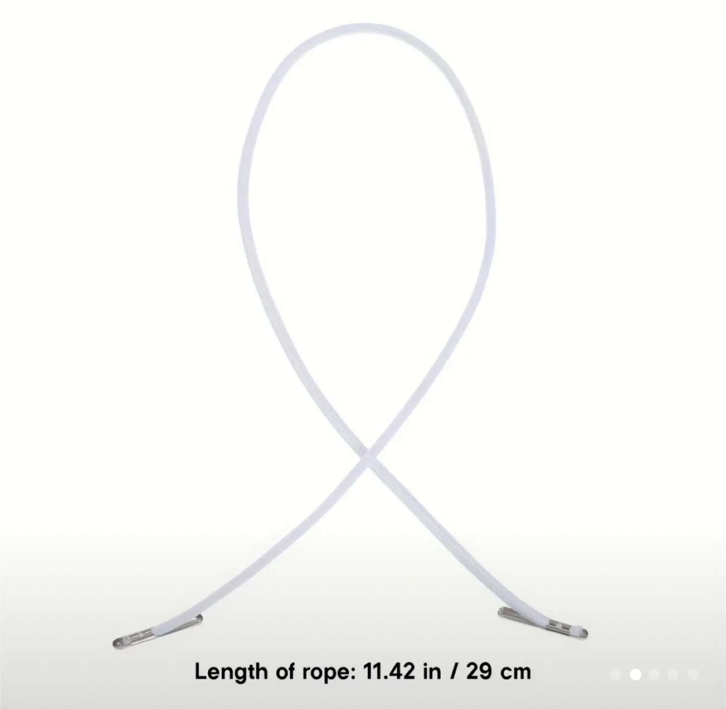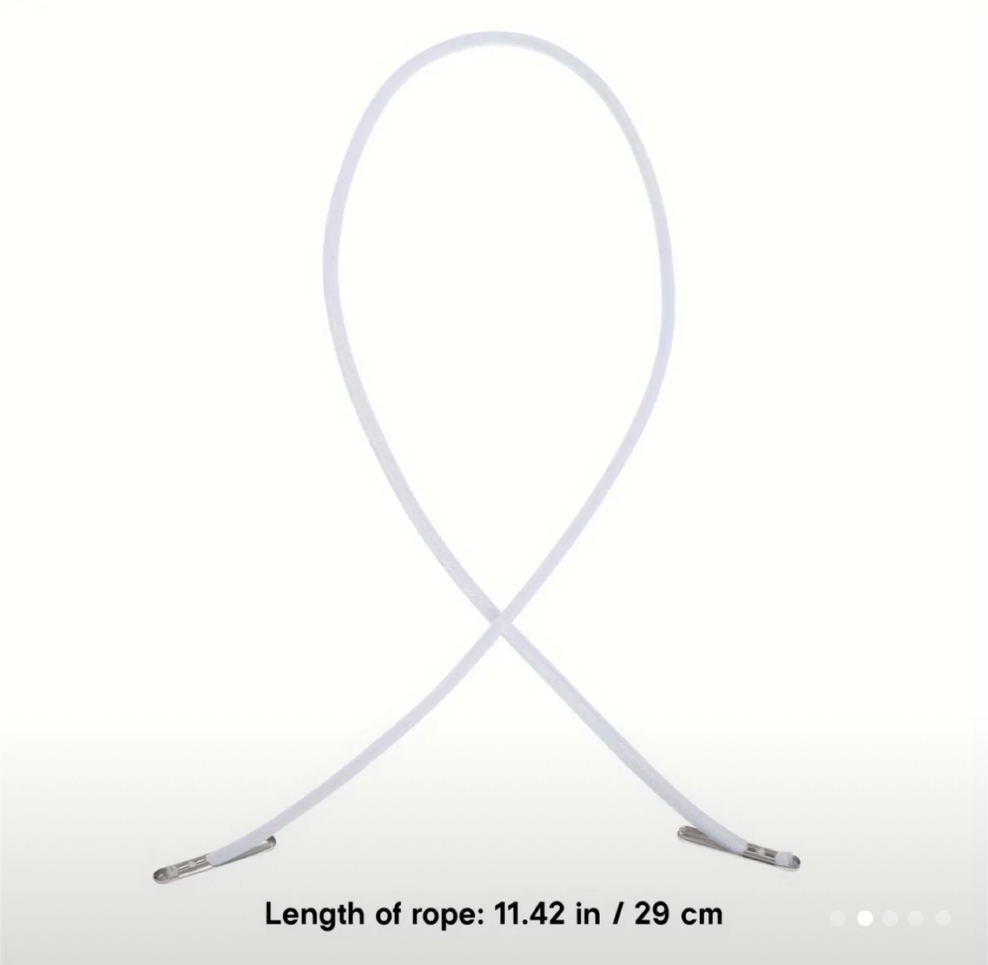 Elastic cord with metal barbs. The length of the rope is approximately 11.42 inches or 29 cm, making it quite versatile for various uses - loop string for masks, bookbinding, crafting, etc.