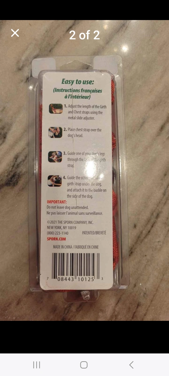 This is a brand new Sporn Comfort Harness, size small/petit. It's lightweight and strong, with soft neoprene padding for your furry friend. The packaging includes easy-to-use instructions. Perfect for dogs with a girth of 20-30 cm