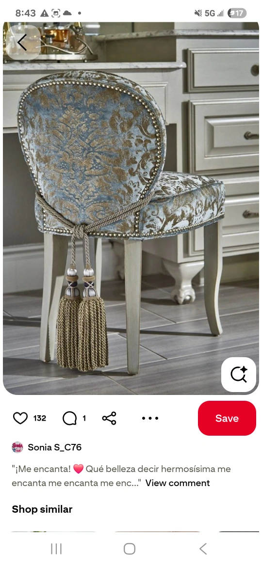 Selling a lovely accent chair with a unique patterned design. It features a cushioned seat and back, accented with decorative nailhead trim. The chair also has a tassel detail, adding a touch of elegance to any room