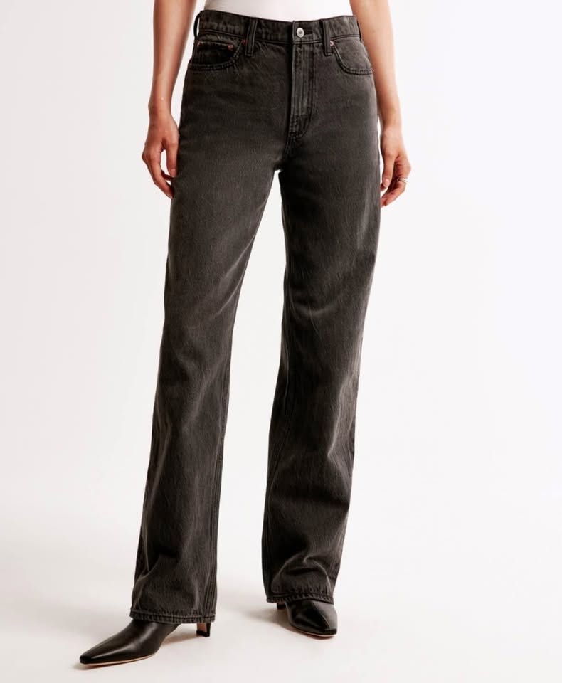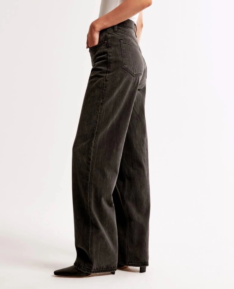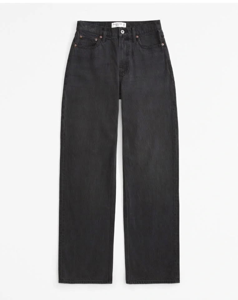Abercrombie and Fitch Curve Love High Rise Loose Jeans in Washed Black (discontinued wash)