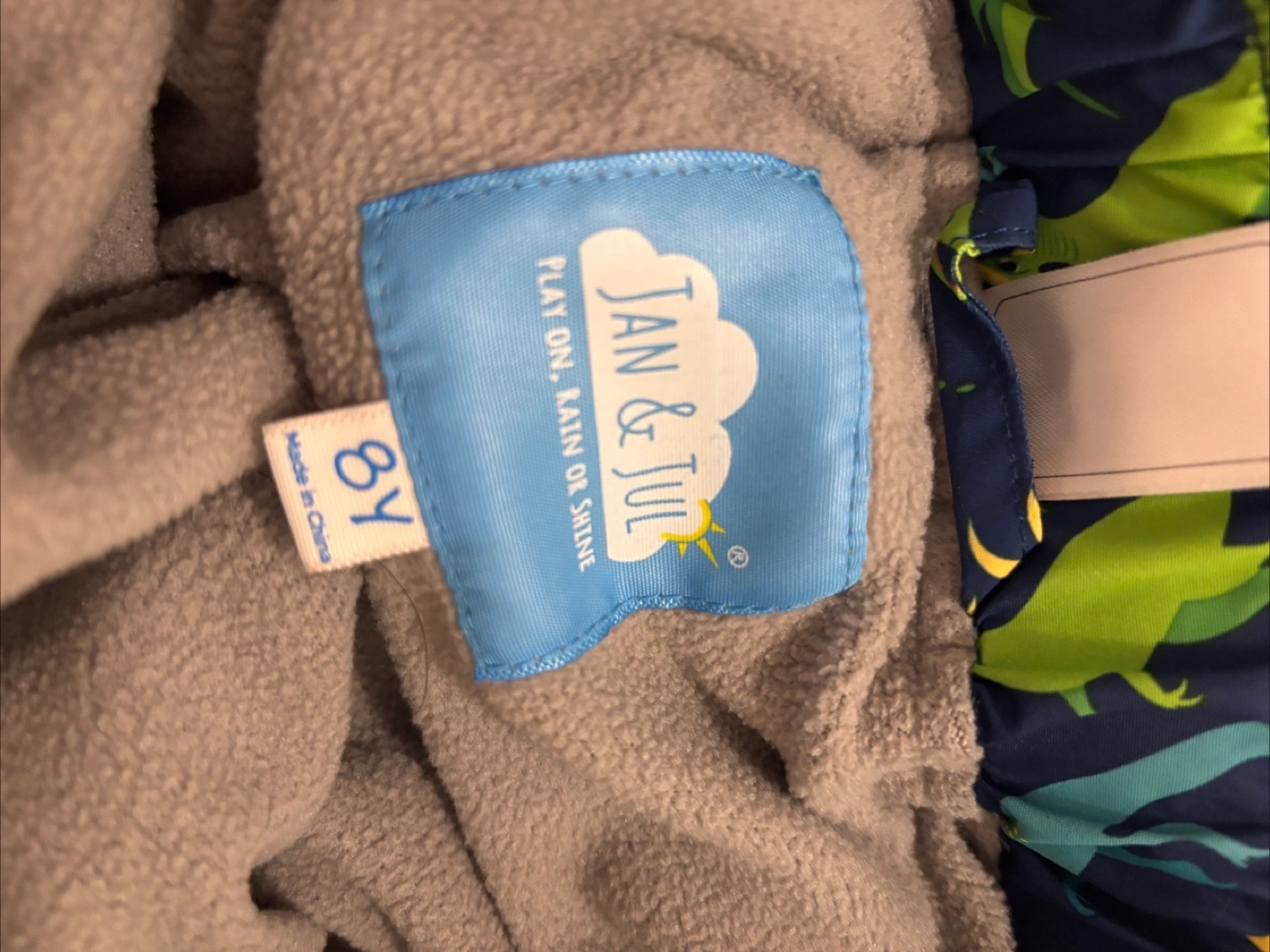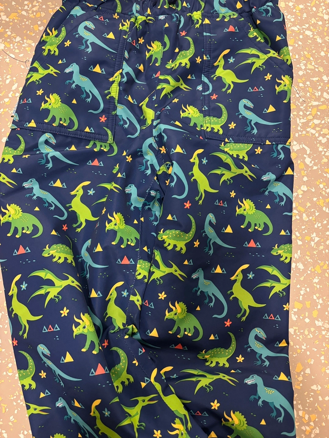 Cute Jan & Jul snow pants in a fun dinosaur print! These are size 8Y and perfectly fit 7-10 yrs and easy to put on by your child. The pants have a soft, cozy lining for extra comfort.