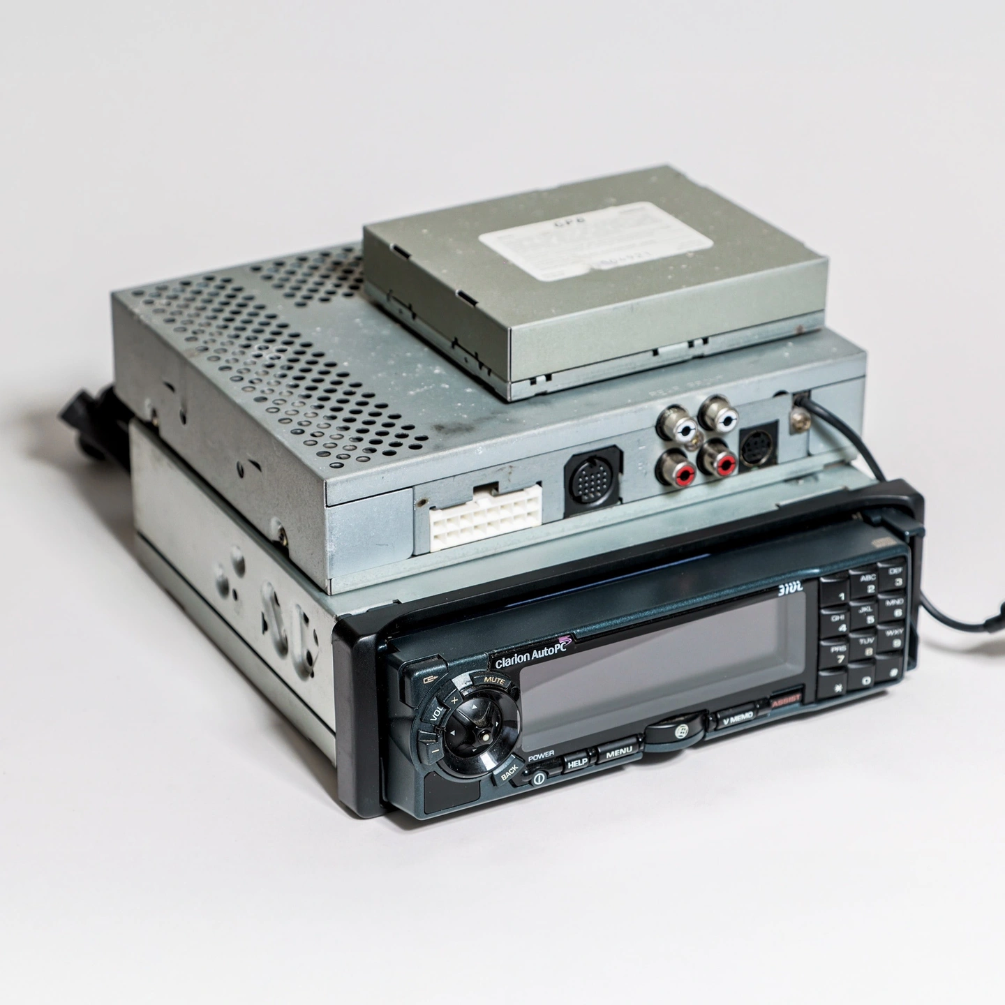 Pre-owned. In great condition. Everything works. Vintage Clarion Auto PC Bundle from 1999 The Clarion AutoPC 310C is a car stereo system that features a CD player. It was notable for being one of the first in-dash units also to read CD-ROM data discs and had voice control over volume. Capable of text-to-speech and voice activation. Navigation With Clarion AutoPC™, new territory doesn't have to be foreign territory, and you'll never have to fumble with maps or written directions again. The Navigation features of the AutoPC make finding even the most hidden-away destination a snap - all you need to do is tell the AutoPC where you are and where you want to go, and you're on your way. This Package Includes the GP8 GPS Antenna/Receiver Turn-by-turn navigation with included GP8 GPS receiver and external antenna. Features: -- Microsoft Windows CE Operating System -- AM/FM Stereo -- 35 Watts x 4 Amplification -- 4 Pre-Amp Outputs -- CD/CD-ROM Player -- MP3 playback via aftermarket add-on software -- Microphone -- Voice Control -- Text-To-Speech Messages -- Universal Serial Bus (USB) -- Infrared Data Port -- Type II Compact Flash Card Slot -- 1 Din Form Factor -- Hitachi SH3 Processor -- Digital Sound Processor (DSP) -- 16 MB Ram & 8 MB ROM -- 256x64x8 Color LCD -- Serial Port (For GPS Receiver) -- Address Book -- Removable Faceplate -- Voice Memo -- 16MB Compact Flash Memory Card -- Clarion GPS Receiver/Antenna (GP8) Items included are: * 310C Head unit * Controller * GP8 GPS receiver and antenna * Connection cables, and brackets * 16Mb Flash Drive Video: https://www.youtube.com/watch?v=L2Q744hZZFE Price is fixed. Local pickup in Richmond Hill Can be shipped for additional fees