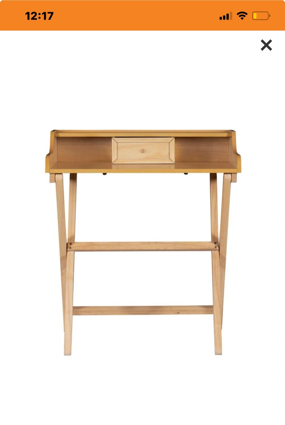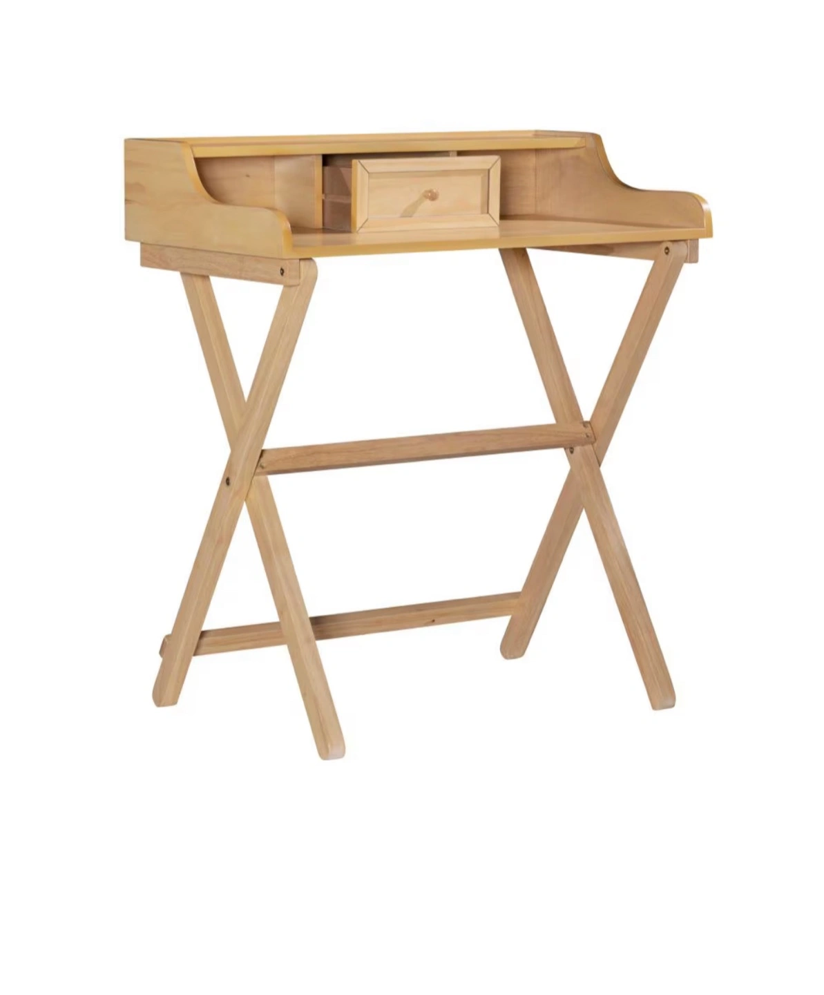 Selling a cute folding wooden desk! It's perfect for small spaces and easy to store when not in use. It features a small drawer and a shelf on top for extra storage. Great for a student or anyone needing a compact workspace