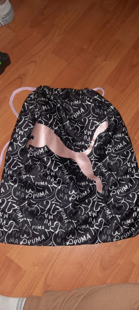 Selling a Puma drawstring bag with a fun, all-over print featuring the Puma logo and hearts! It's perfect for carrying your gym clothes, books, or anything else you need on the go. The bag is black with a rose gold Puma logo. It's in great shape and ready for a new home