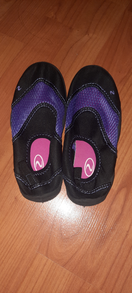 These Aqua Sphere water shoes are perfect for your little one! They feature a black and purple design with a comfortable pink insole. Great for the pool or beach! Size 13.