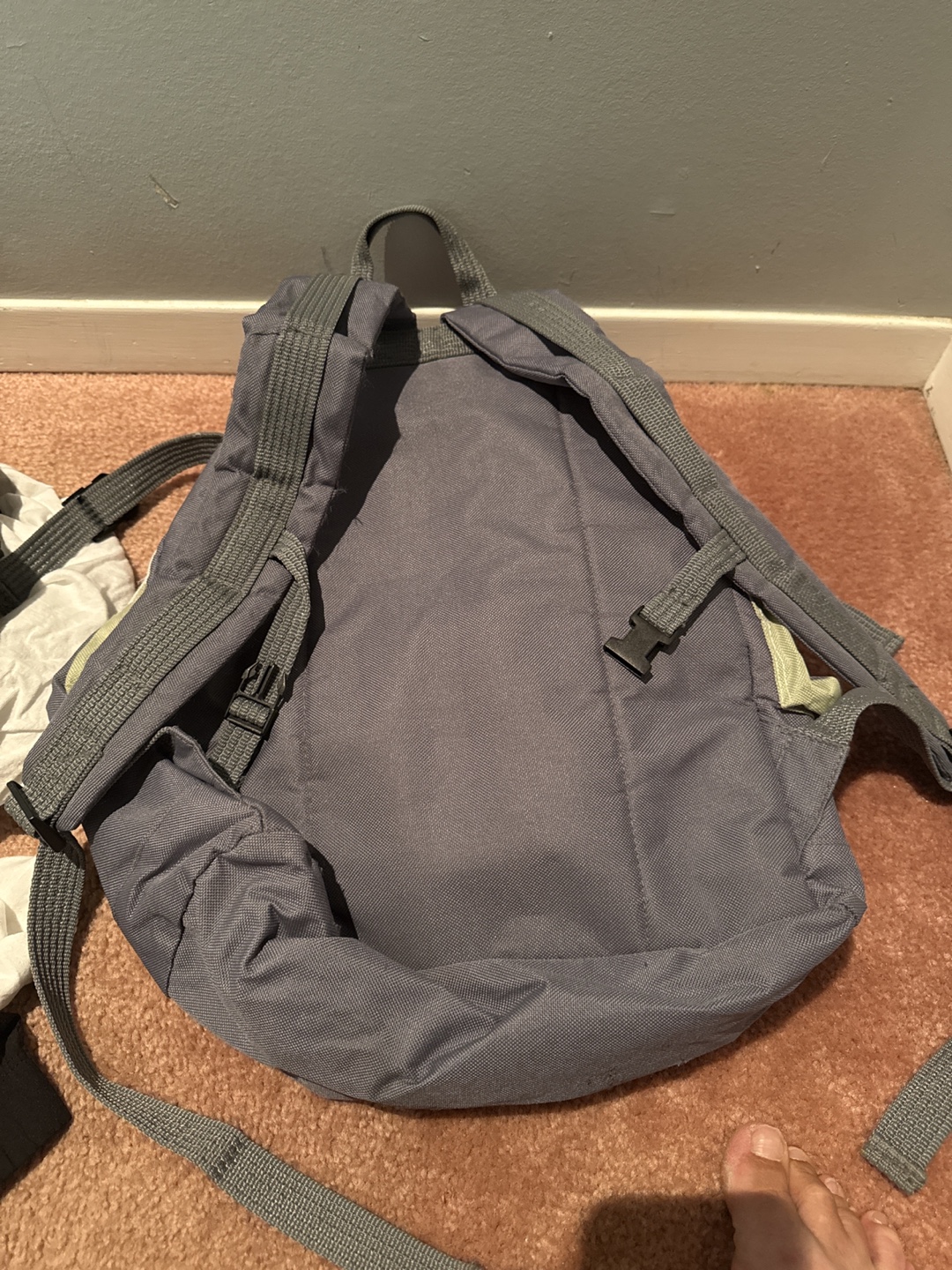 Selling a Canada backpack in grey and green. It's in good condition and ready for your next adventure! It features a front pocket with a Canadian flag design.