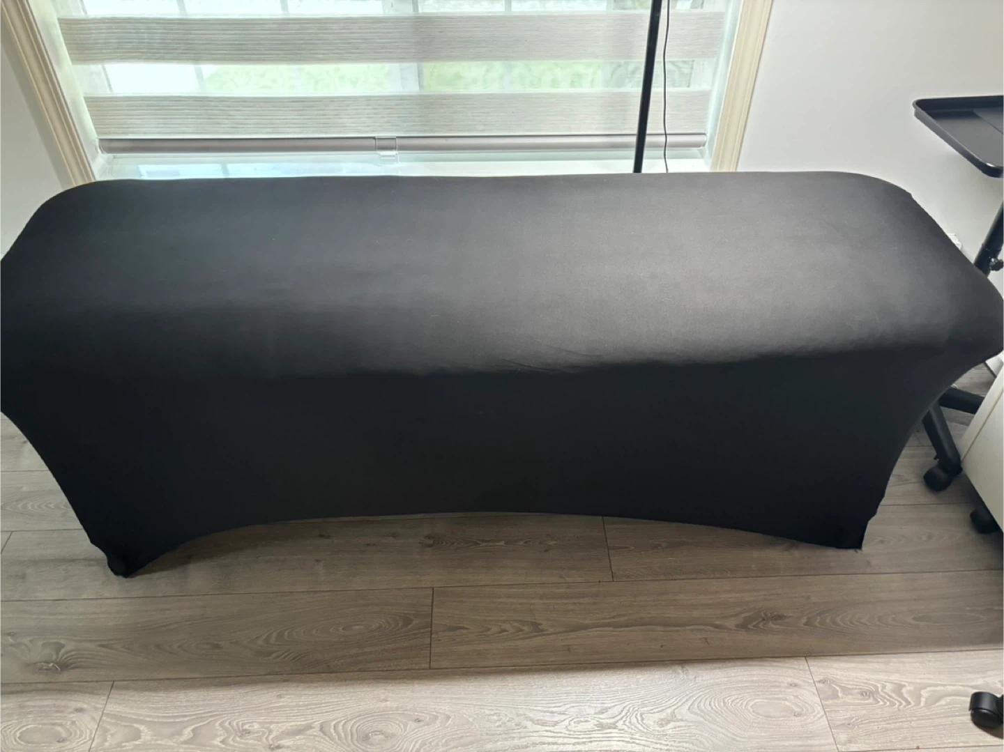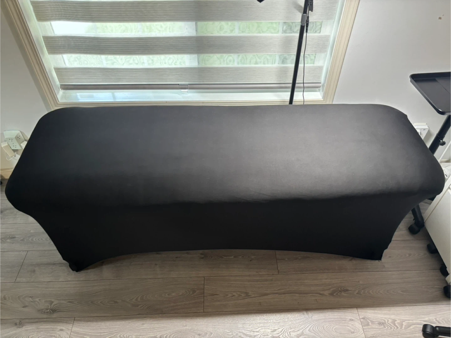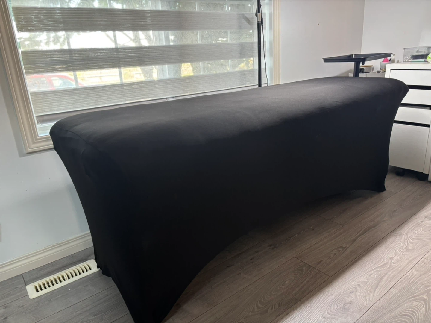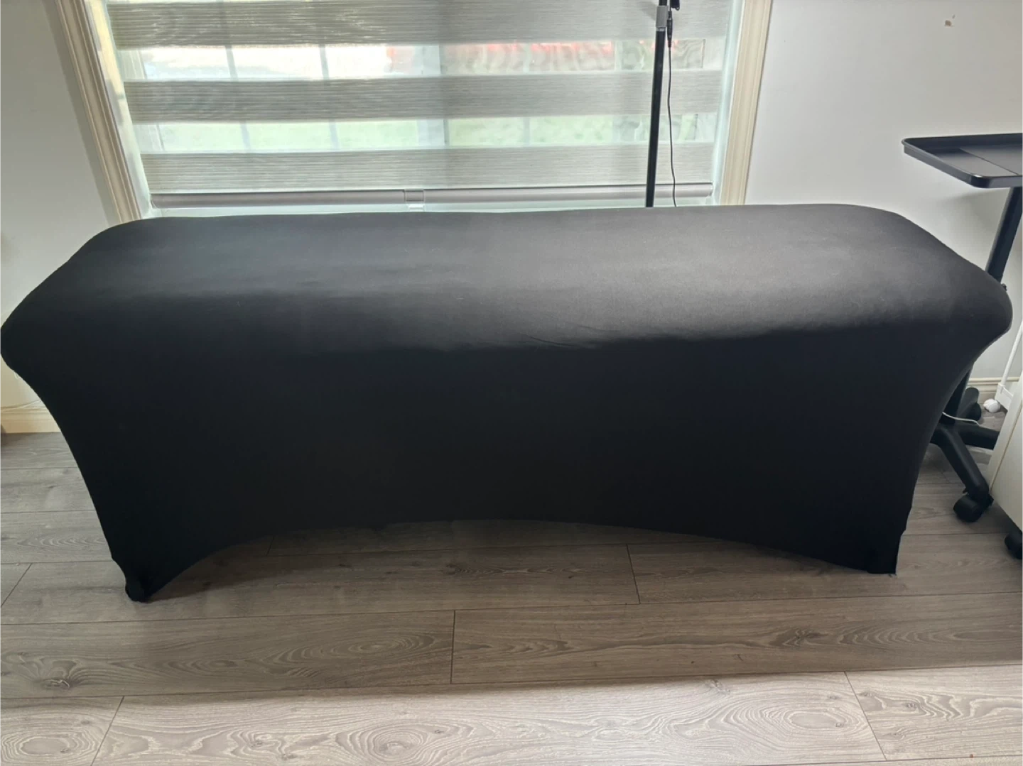 12Here's a black fitted massage table cover! It's in great shape and ready to use. Perfect for covering massage tables for professional use! * COVER ONLY! * - Massage table sold separately. $100 for both (table and cover)