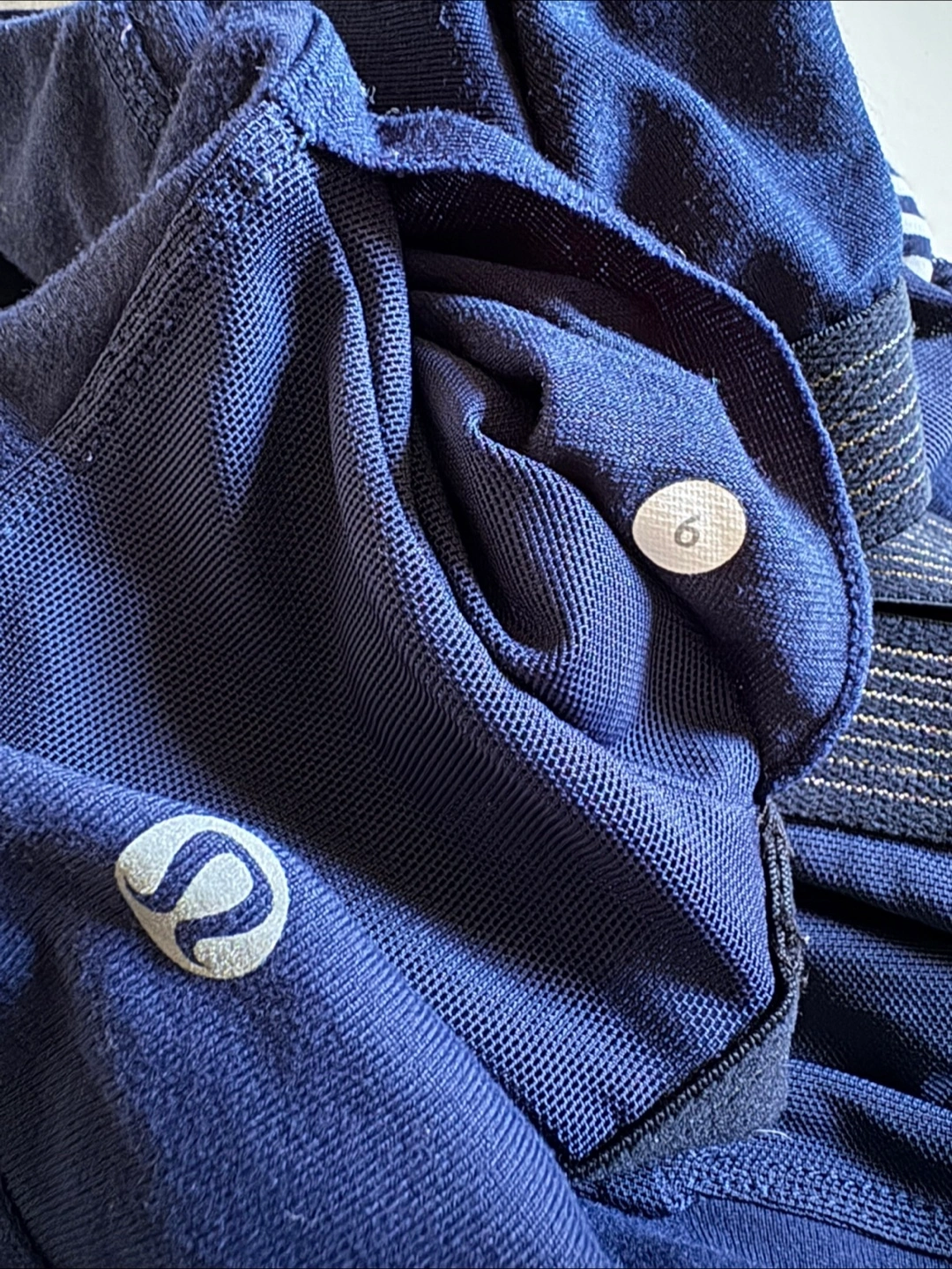 Stylish navy blue halter top with chic striped detailing. Comfortable for yoga and eye-catching. Great condition. I also offer matching yoga pants