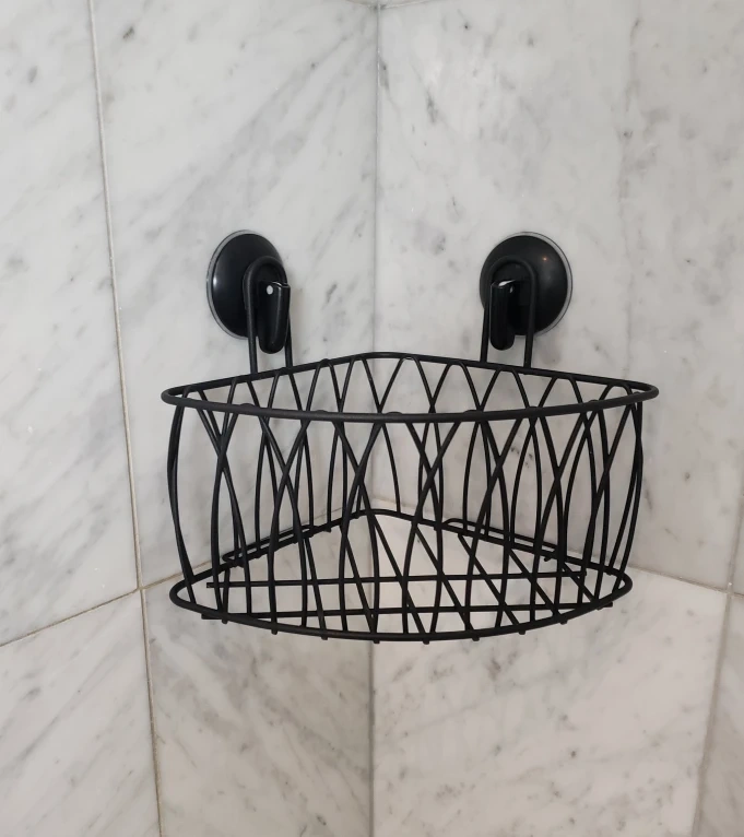This black corner shower caddy is perfect for holding all your essentials! It features sturdy suction cups for easy installation and a sleek design to fit seamlessly into any bathroom decor.