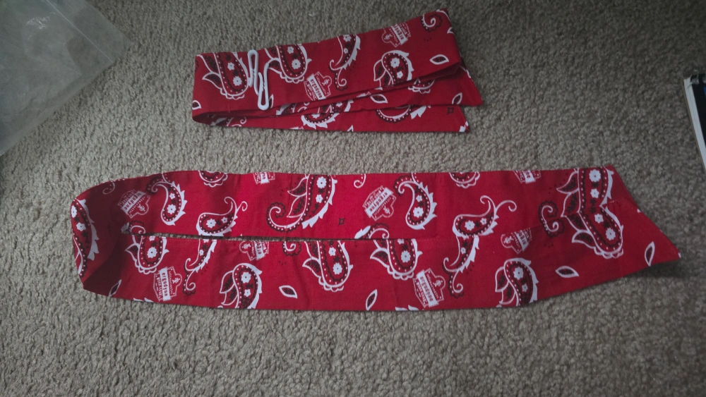 Here's a red bandana headband . It's perfect for adding a pop of colour to your outfit or keeping your hair out of your face. Great condition!