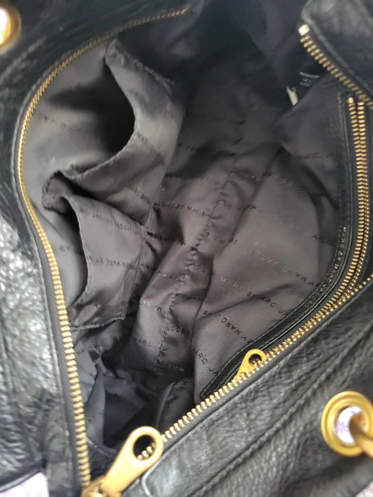 Selling a gently used Marc by Marc Jacobs satchel. It's a stylish black leather bag with gold-tone hardware. The bag is in good condition and ready for a new home!