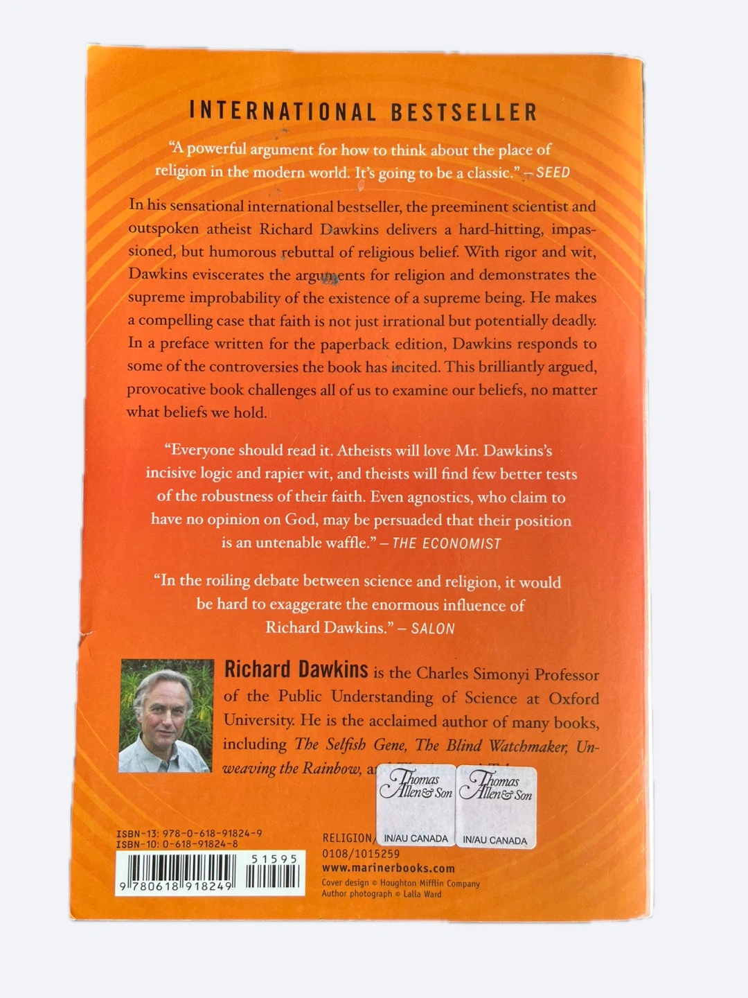 Giving away a copy of "The God Delusion" by Richard Dawkins. It's a New York Times Bestseller and was selected as a Best Book of the Year by multiple publications. A thought-provoking read!