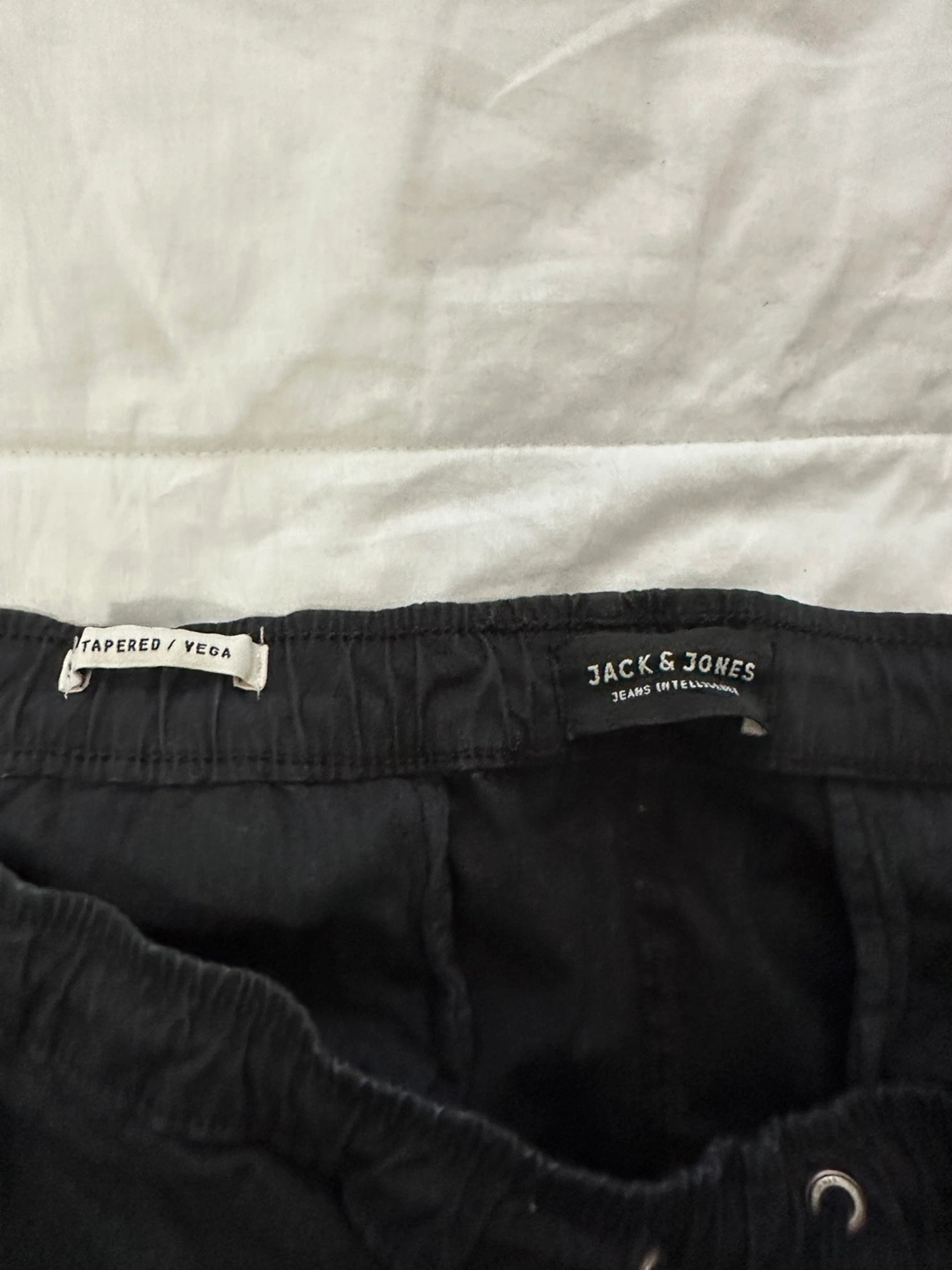 Jack & Jones black tapered Vega joggers. They're in good condition. Perfect for casual wear or lounging around. Size 36x34 / XL.