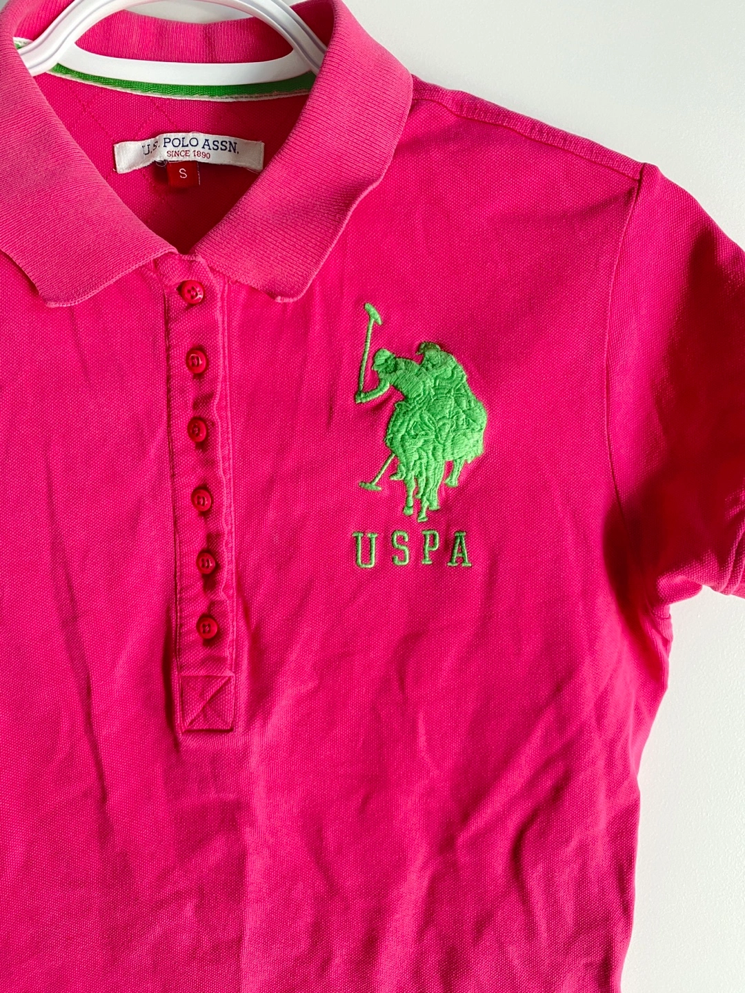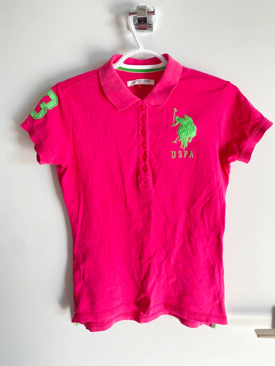 219Selling a cute pink polo shirt from U.S. Polo Assn. It's a size small and features the classic green U.S. Polo Assn. logo. It's in great condition and ready for a new home! ❤️ Check out my other listings!