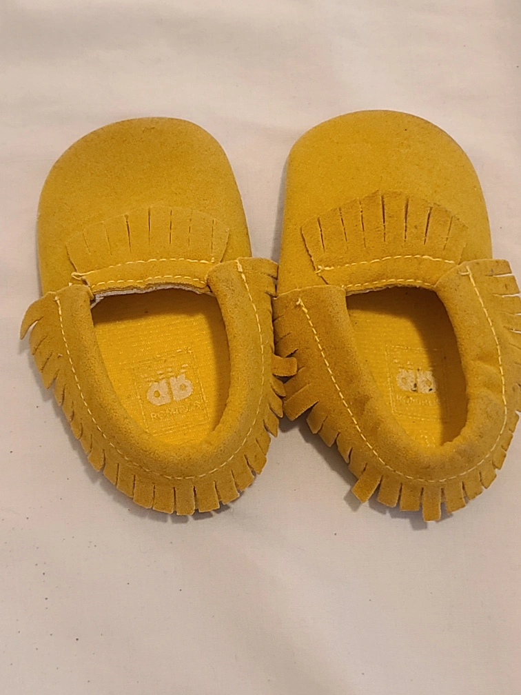 These cute Robeez moccasins are in a lovely yellow colour. Perfect for your little one! Faux suede From a pet-free, smoke-free home Porch pickup near Bathurst station