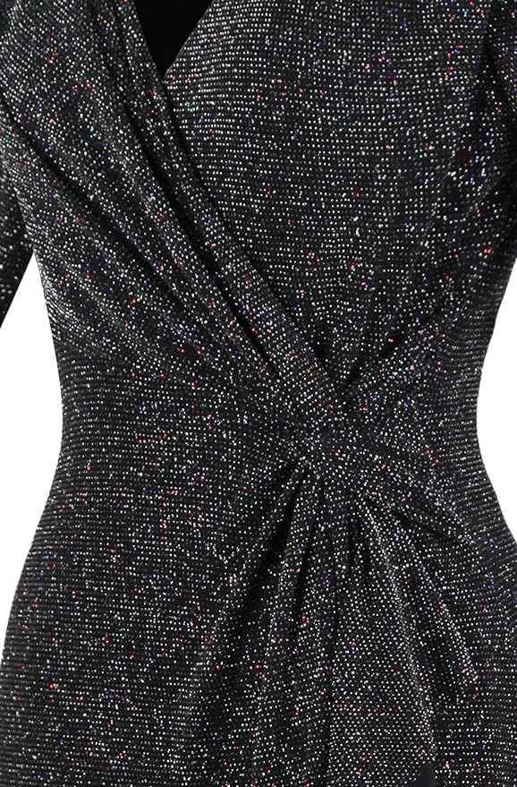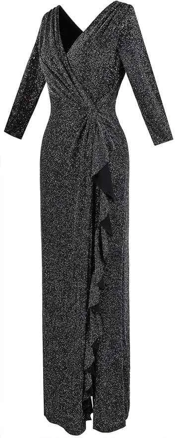 Deep v neck,3/4 sleeve,ruffle detailed,high split,long style