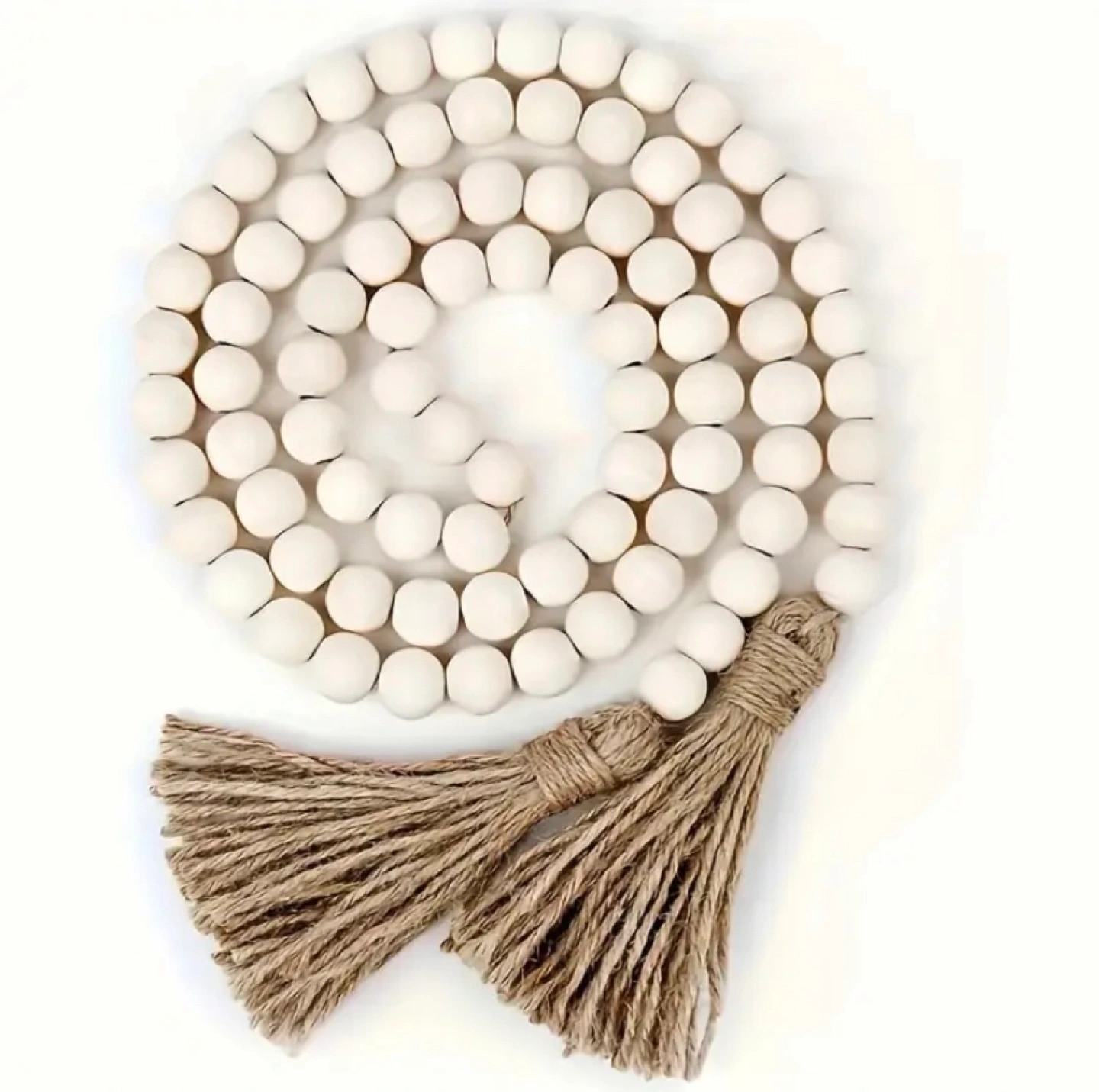Add a touch of rustic charm to your home with this lovely wood bead garland! It features natural jute tassels and is perfect for draping over shelves, mantels, or coffee tables. A simple way to bring warmth and texture to any space