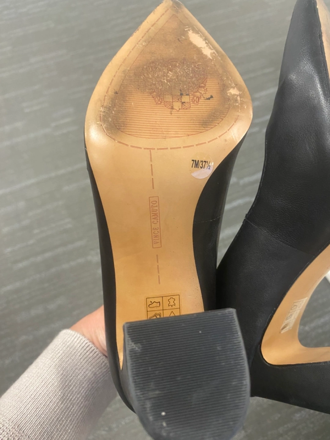Selling a pair of Vince Camuto black chunky heels! They're in great condition and ready for a new home. Perfect for dressing up any outfit!