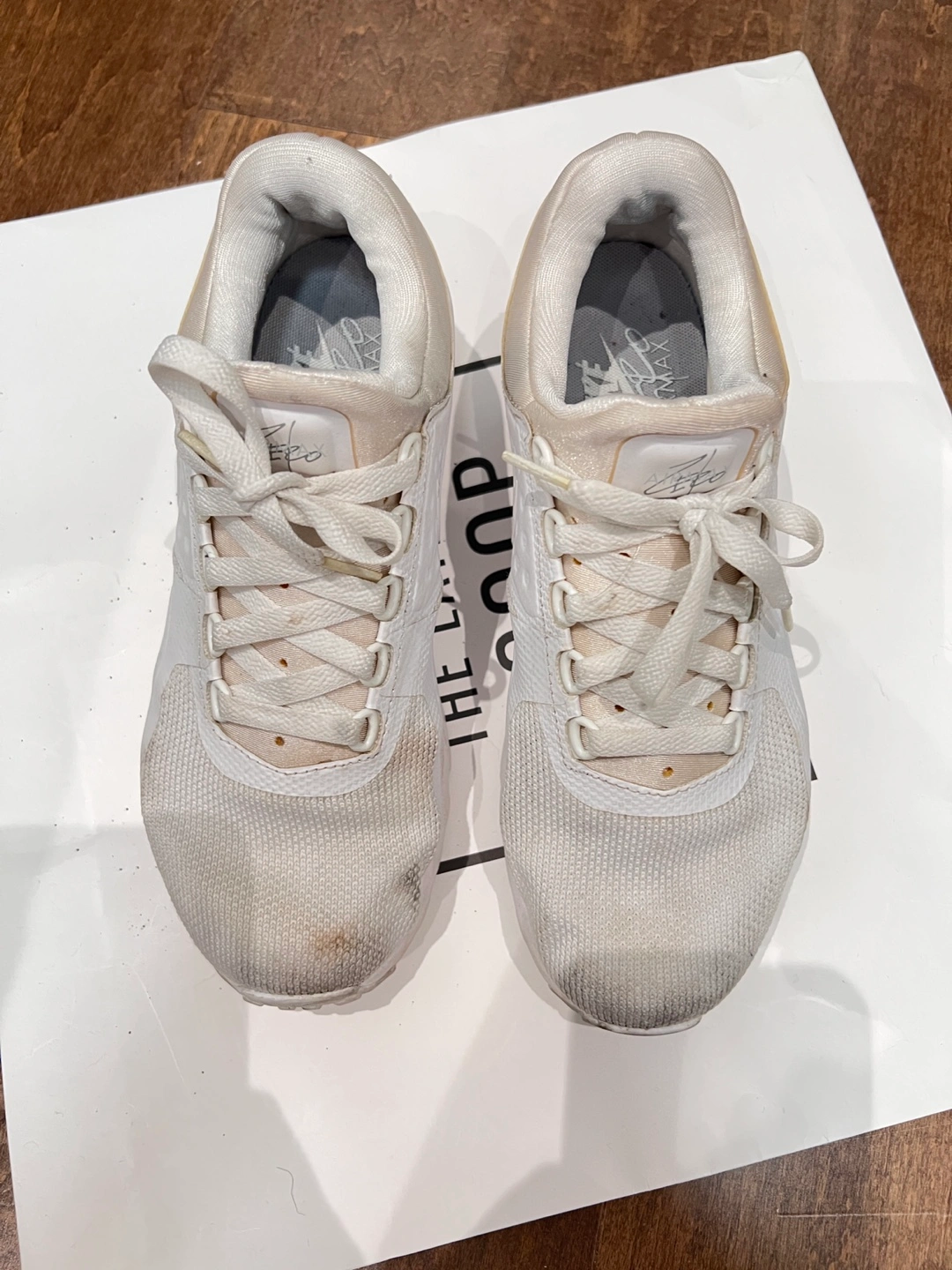 Selling a pair of Nike Air Max Zero sneakers in white. They have some signs of wear, as you can see in the photos, but still have lots of life left in them. Great for casual wear or workouts!