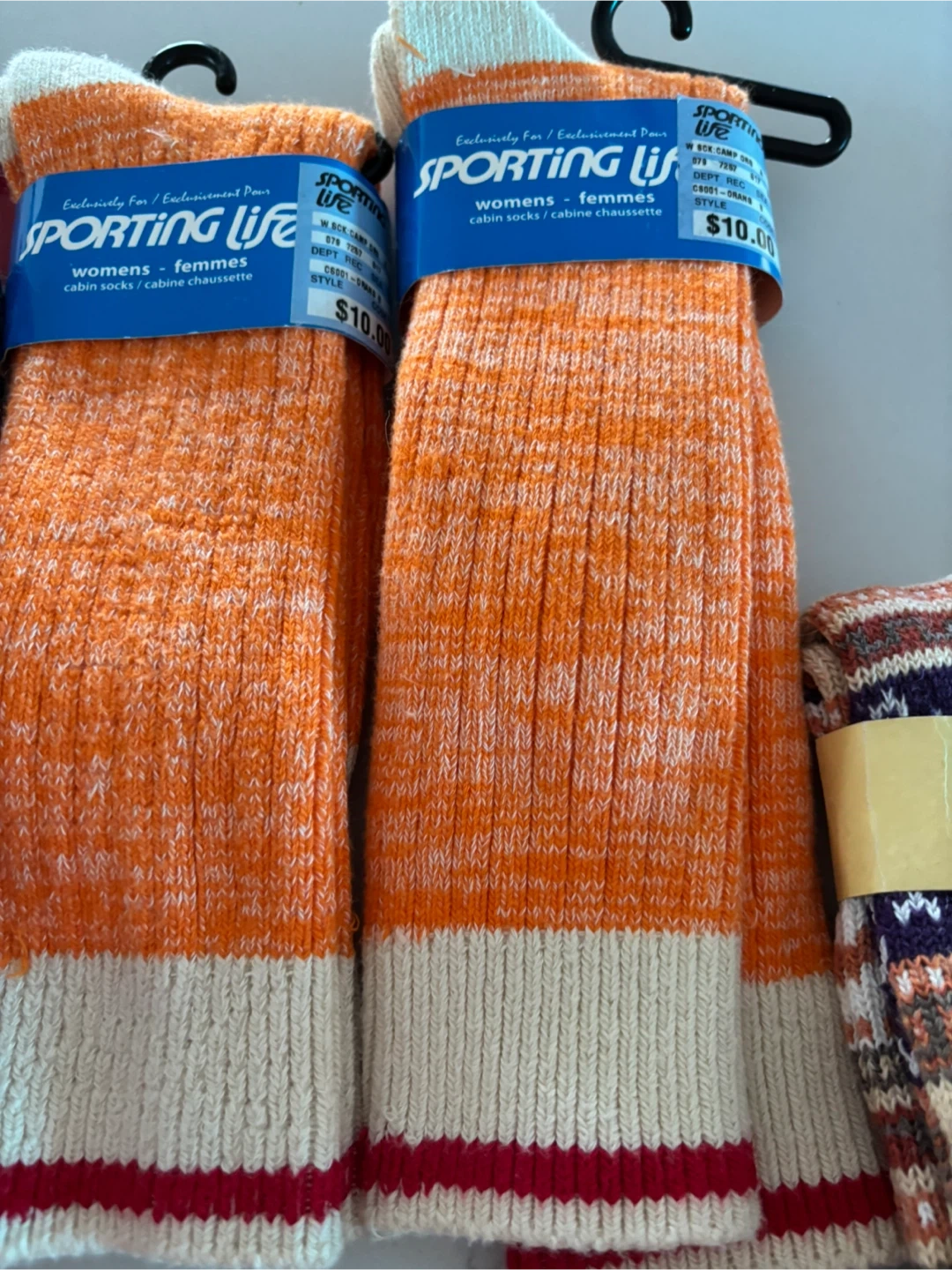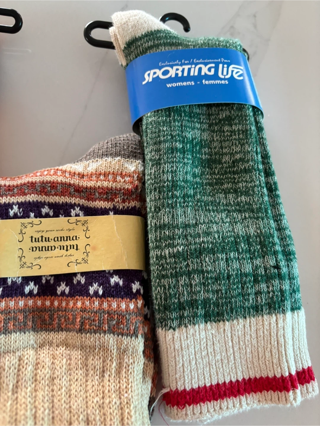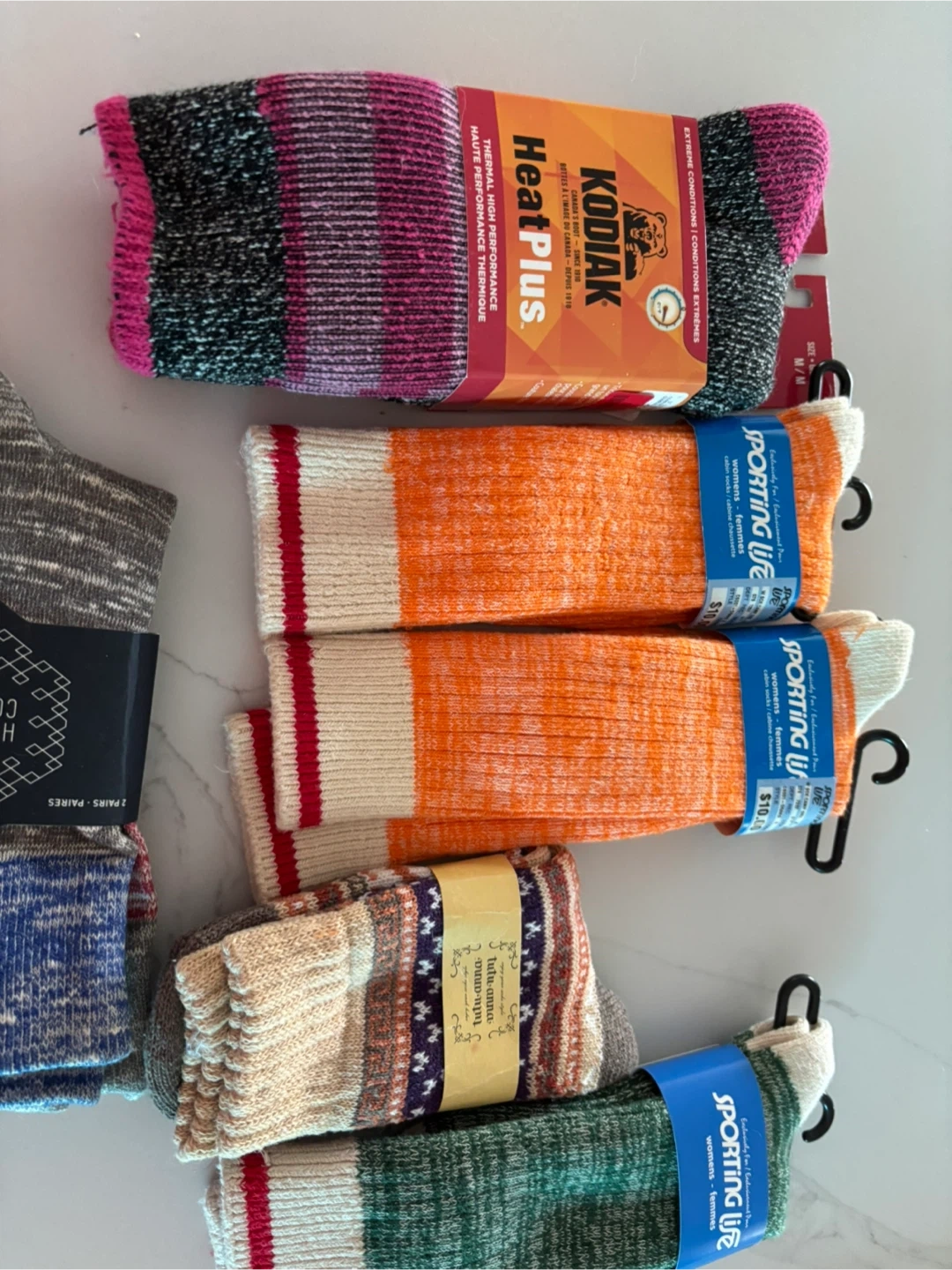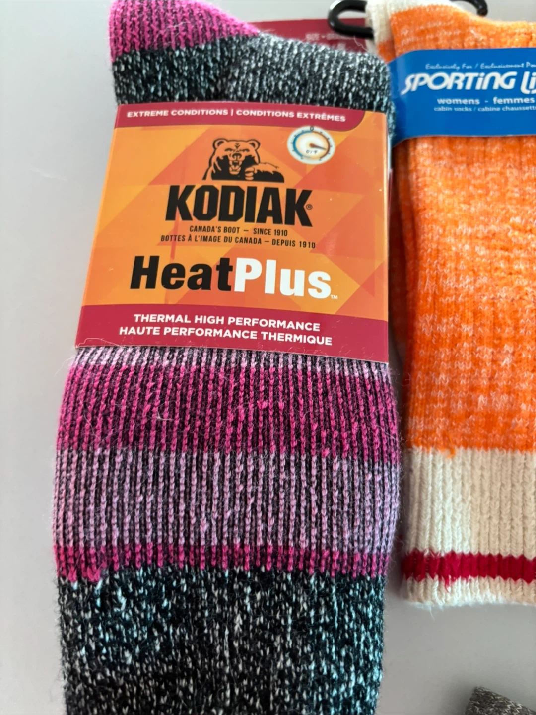 I have a selection of women's cabin socks available, all brand new! You'll find brands like Sporting Life, Held in Common, Kodiak Heat Plus, and tutu-anna. Great for keeping your feet cozy and warm during the colder months Selling as a lot