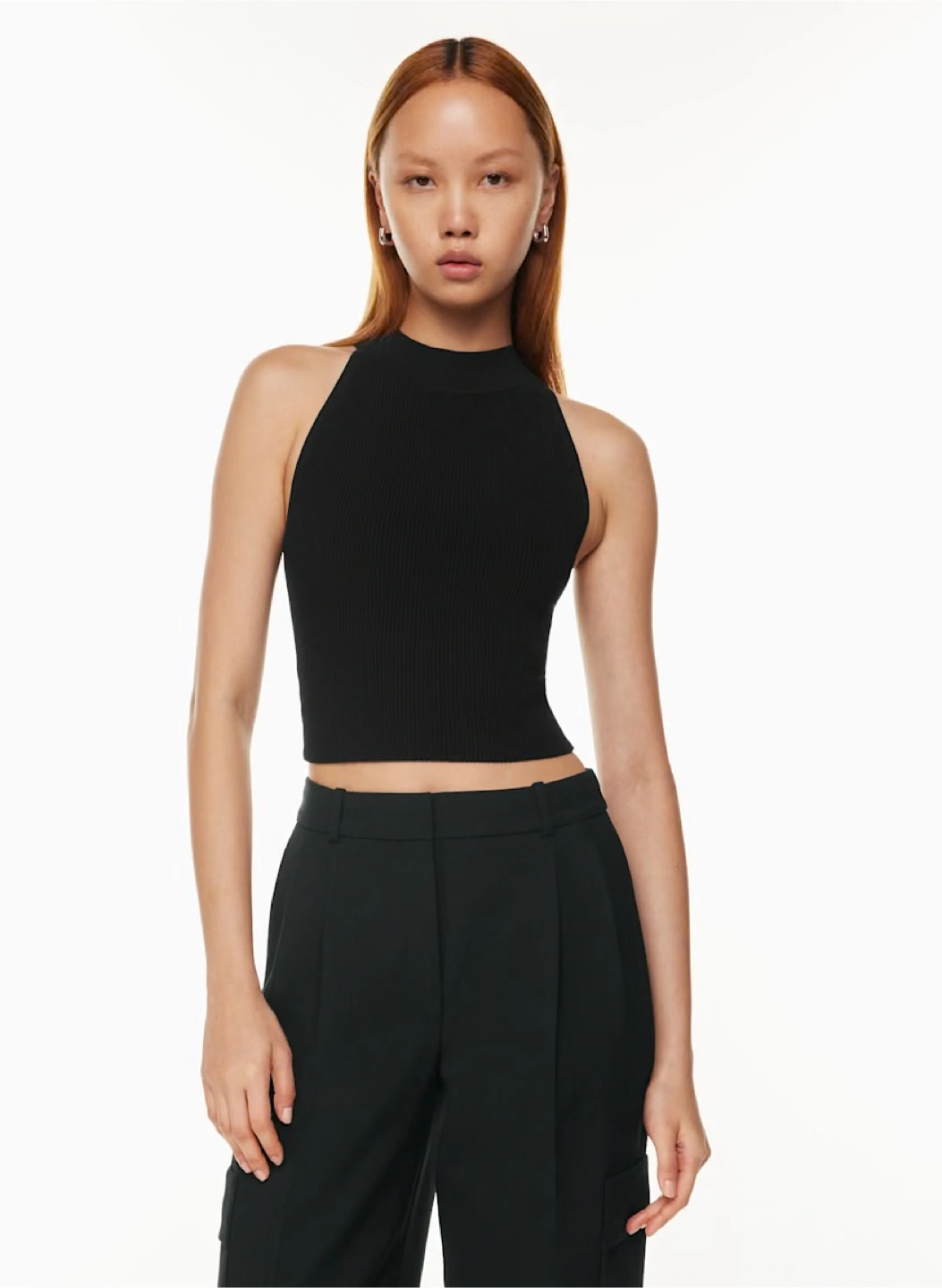 Babaton Sculpt Knit Mockneck Halter Top (Black)