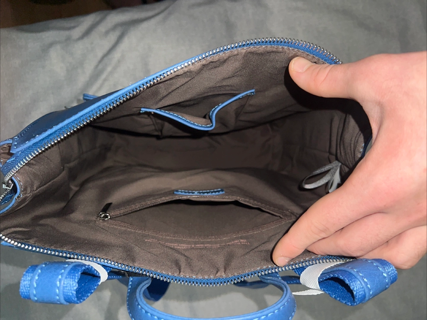 Interior: Zippered pocket, smartphone pocket, and Vintage patch with embossed logo.