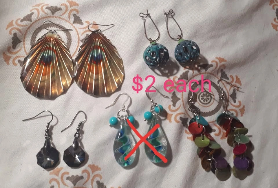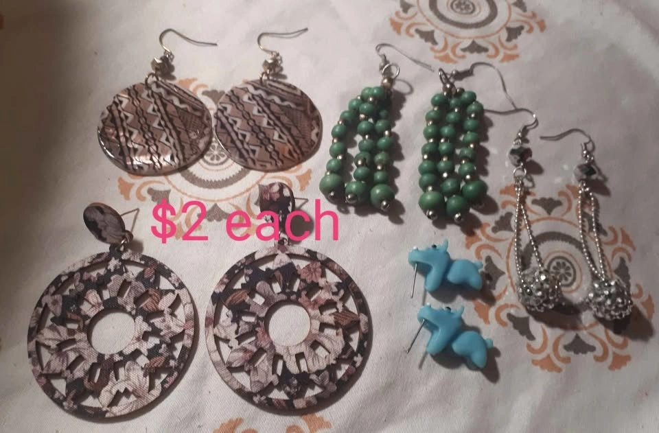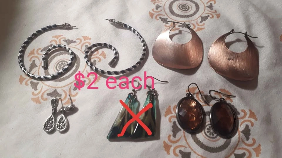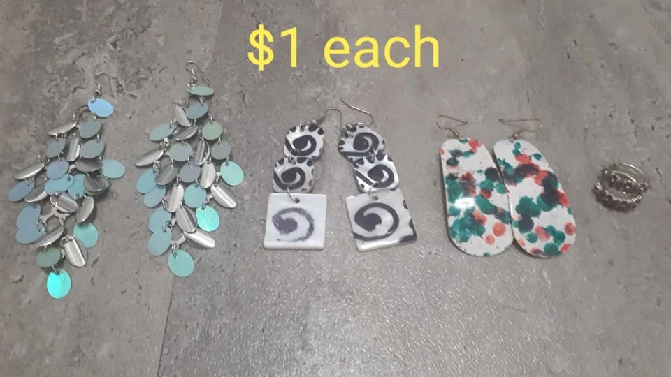 Earrings, see photos for prices. Mostly $2 each, some $1 each. Or all earrings in total for $35 which is 45+ earrings. Located in the hunt club park area near Conroy and Johnston road.
