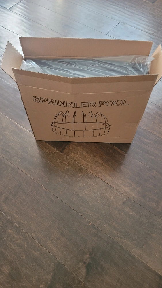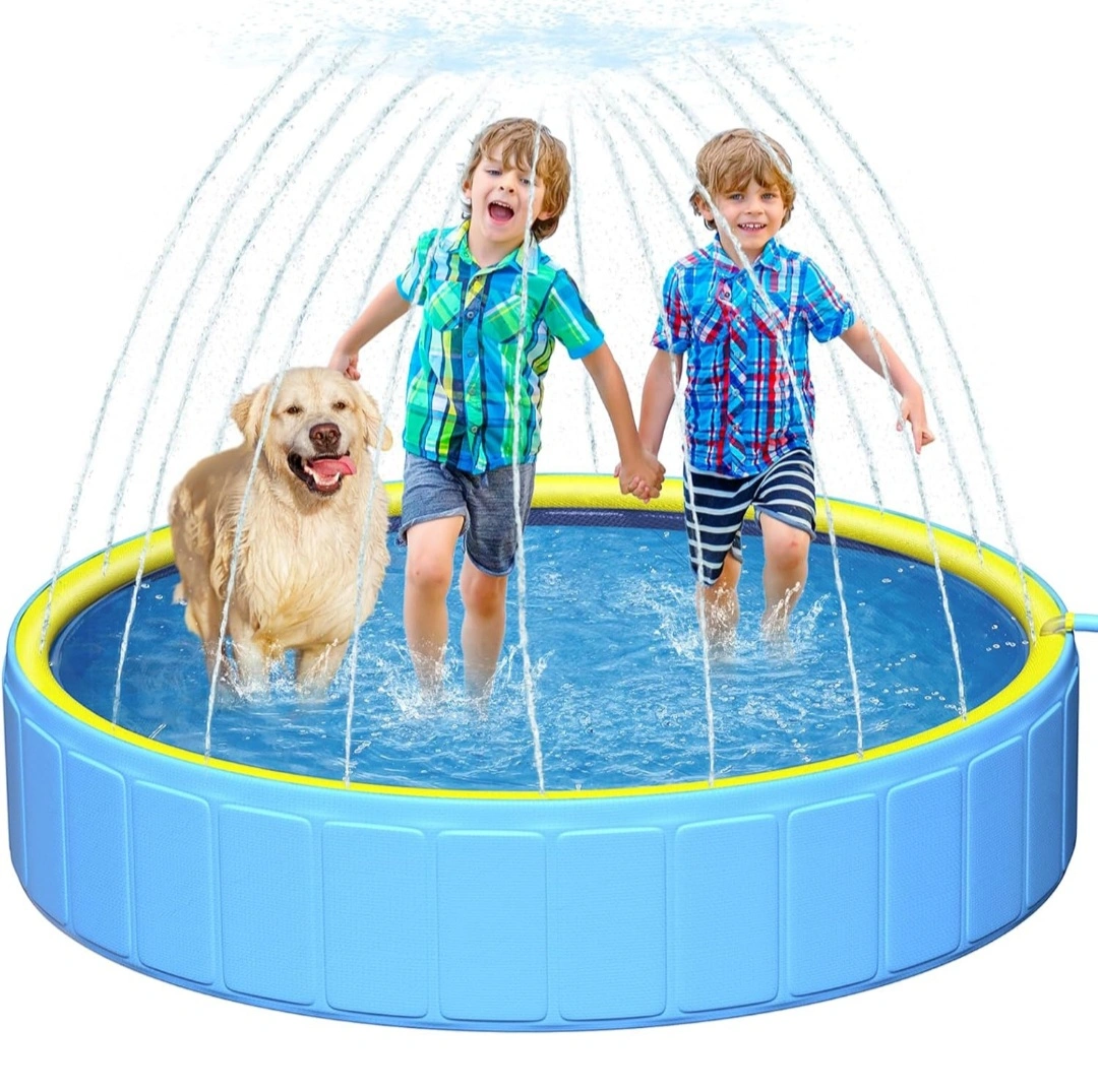 This is a brand new, upgraded design foldable splash pool! It's multipurpose and portable, great as a ball pool, sandbox, dog pool, or swimming pool. It also features a sprinkler.