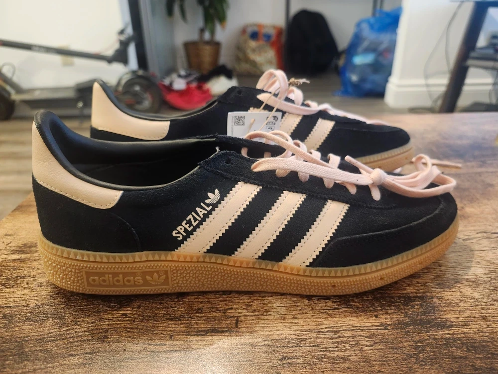 Selling a brand new pair of Women's Addidas Handball Spezial shoes for $50. Size 6.5 but fits as a size 8 (I'm a size 8 in most women's shoes). Never worn, still has tags on and comes with the box. selling for $50. Can meet at victoria park station, Main street station. Thanks!