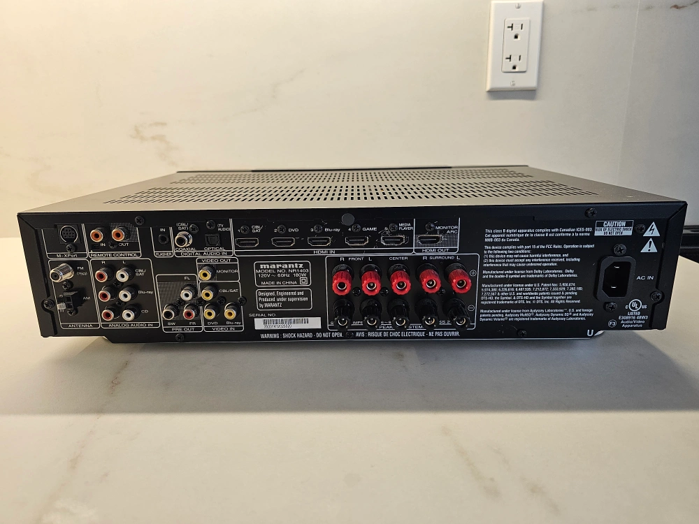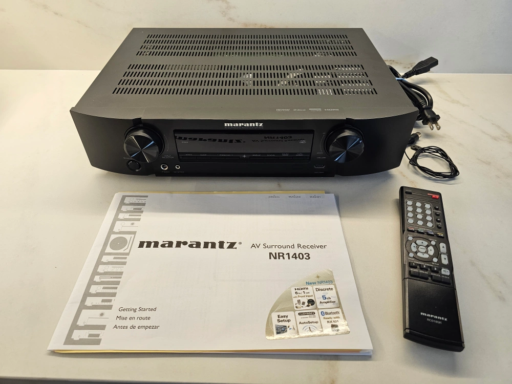 Selling a Marantz NR1403 AV 5.1 Surround Receiver in great condition! This receiver is perfect for creating an immersive home theatre experience. It comes with the remote and manual. If you're looking for a reliable and high-quality receiver, this is a great option!