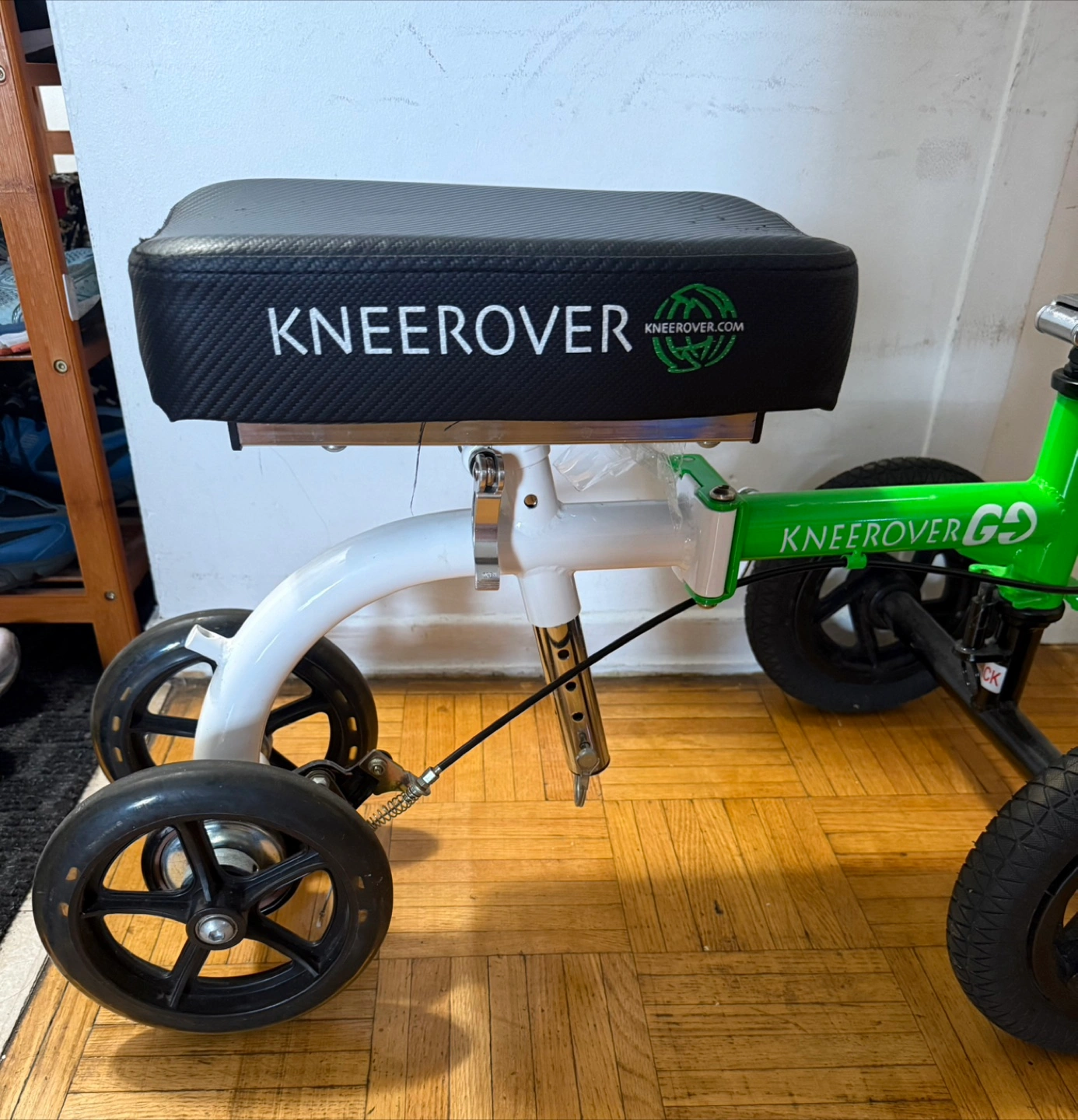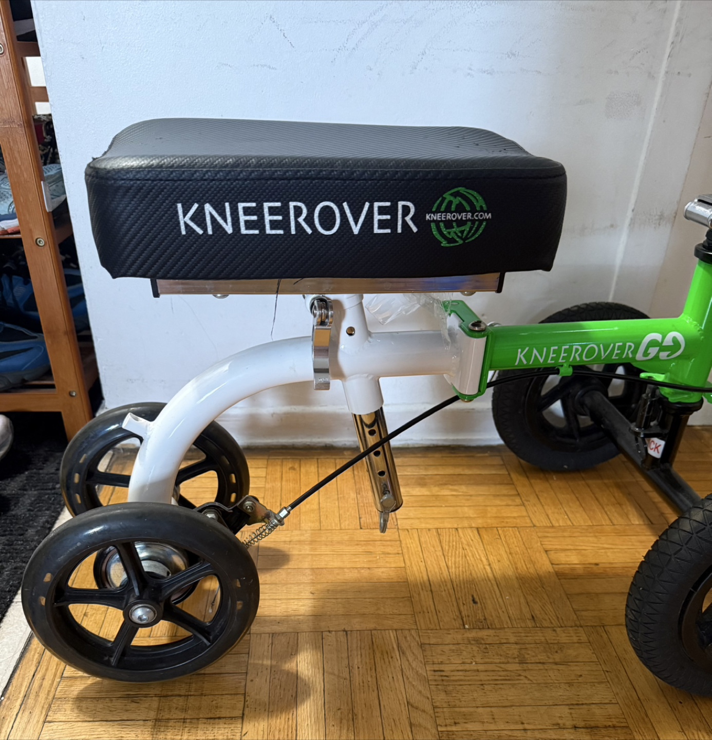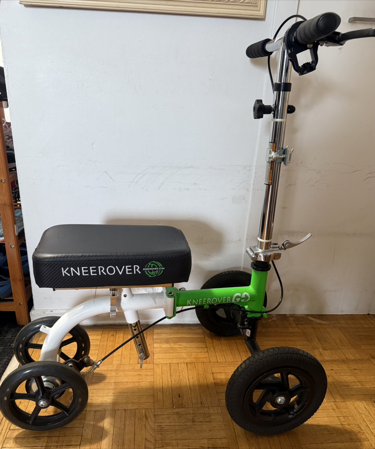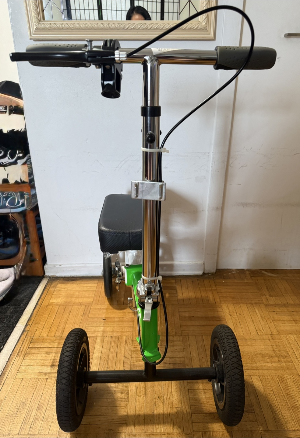 Selling a KneeRover GO knee walker scooter. It's in good condition and ready to help you get around while recovering! The scooter features a comfortable seat and smooth-rolling wheels for easy mobility.