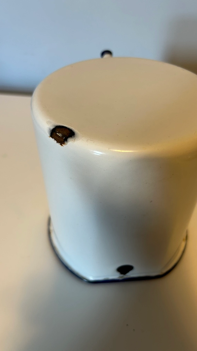 SOLD Vintage Enamel Ware container/ pot/wall decor