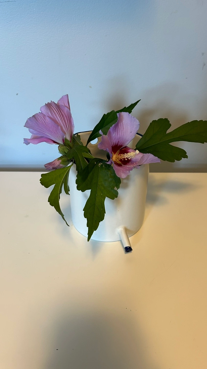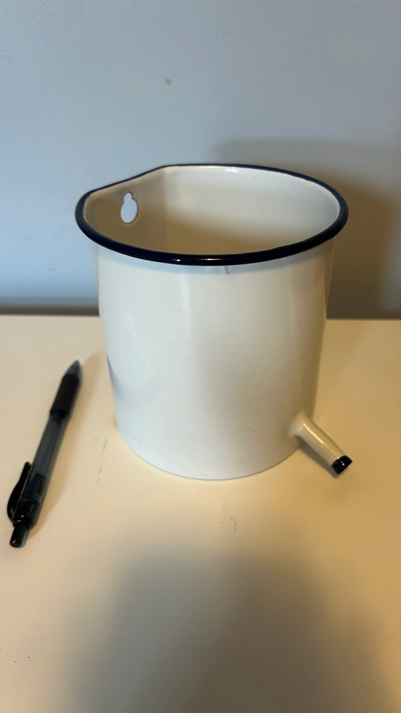 Gorgeous Enamel Ware with spout and holder. Made in the 1930s- 1950s as a medical container in hospitals has become a planter/ watering can / utensils holder and wall decor with a hook.