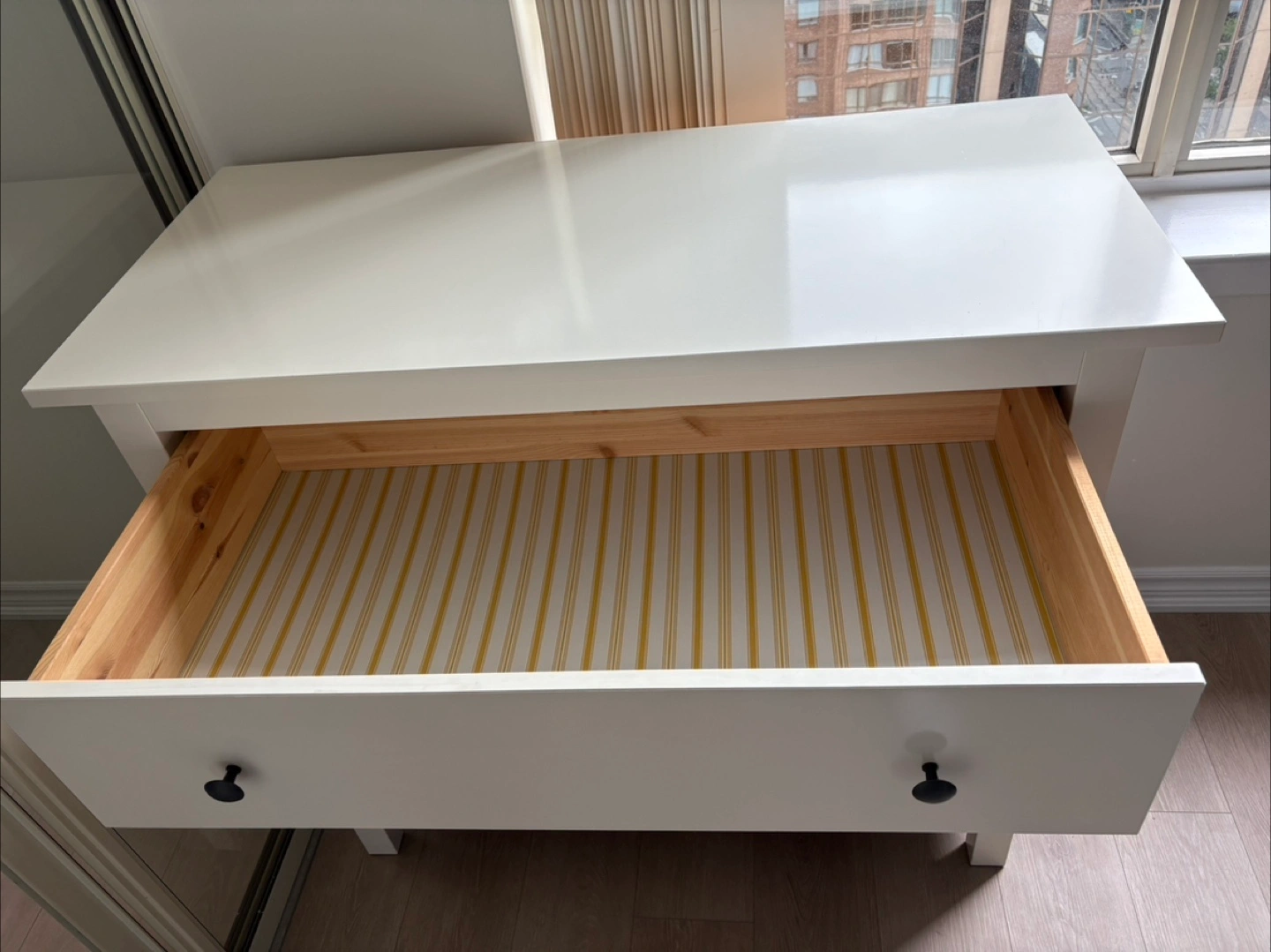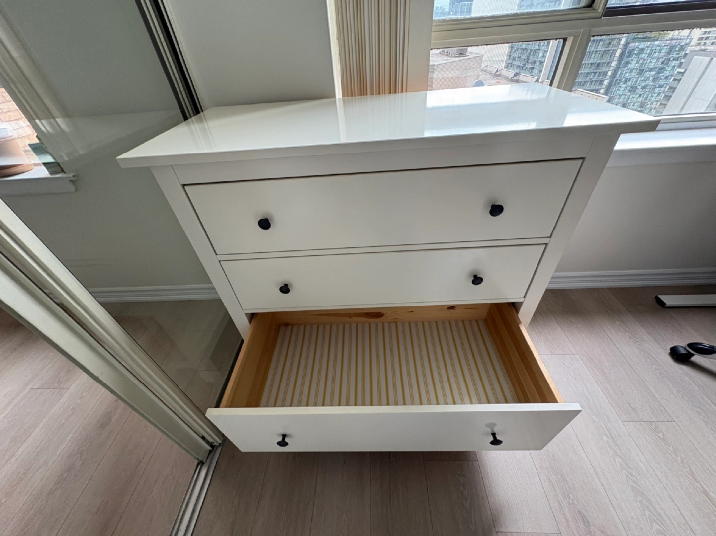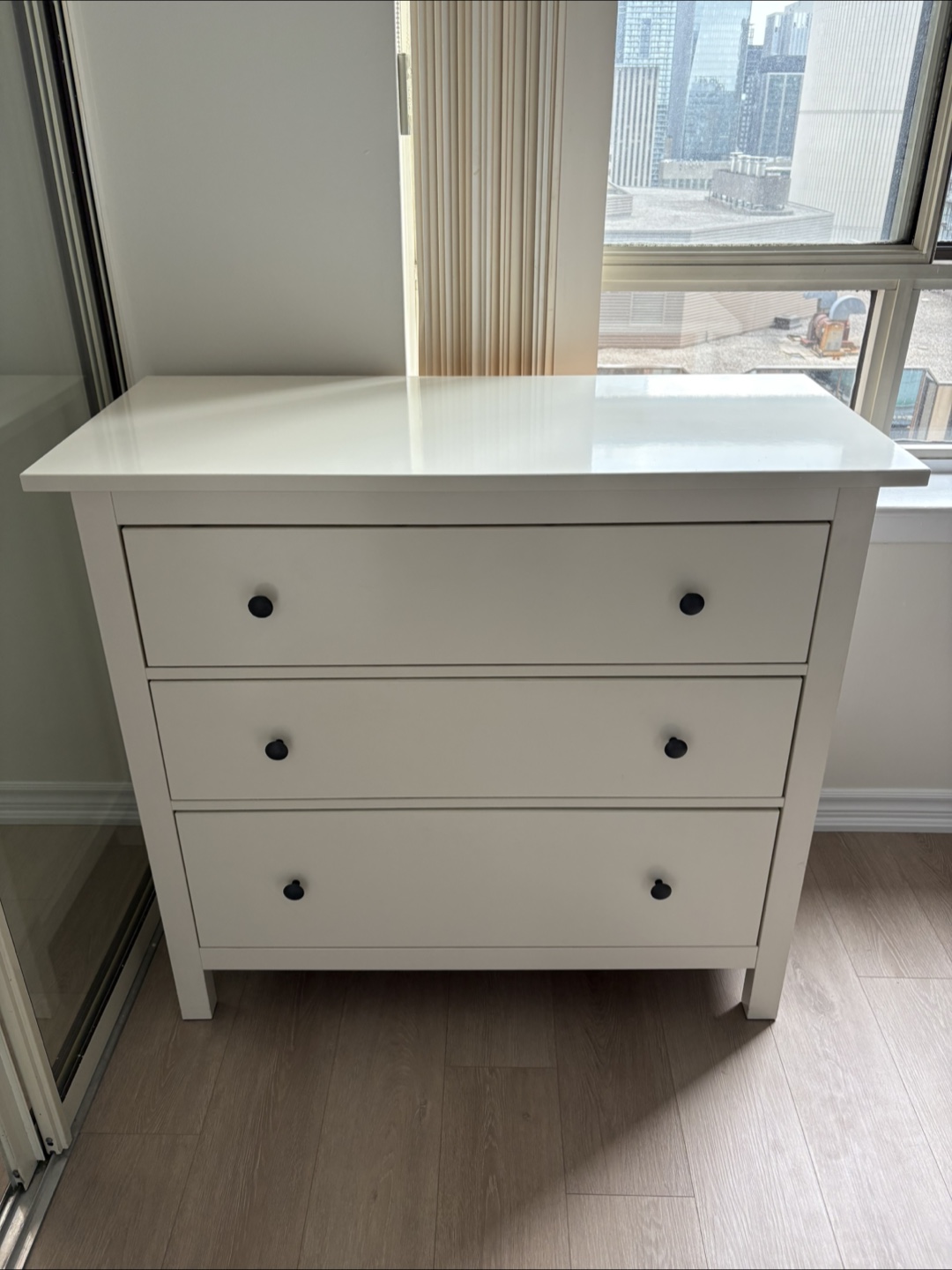 Selling a white IKEA Hemnes 3-drawer chest. It's in great shape and ready for a new home. The drawers slide smoothly and the piece is very sturdy. Perfect for adding some extra storage to your bedroom or living space!