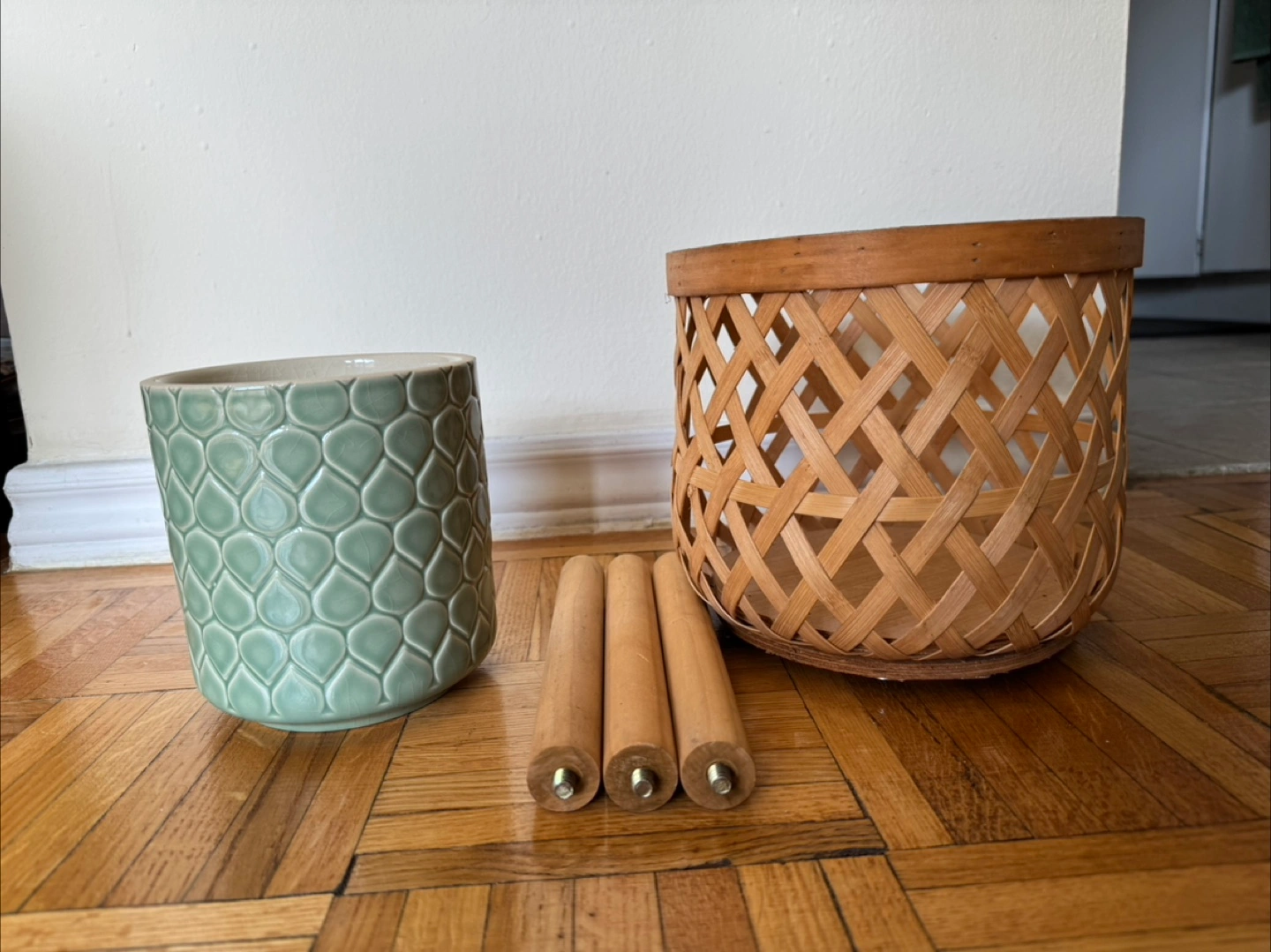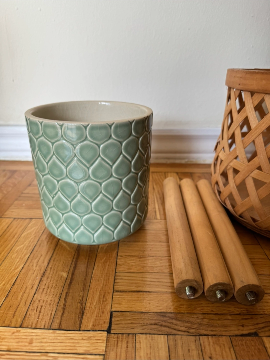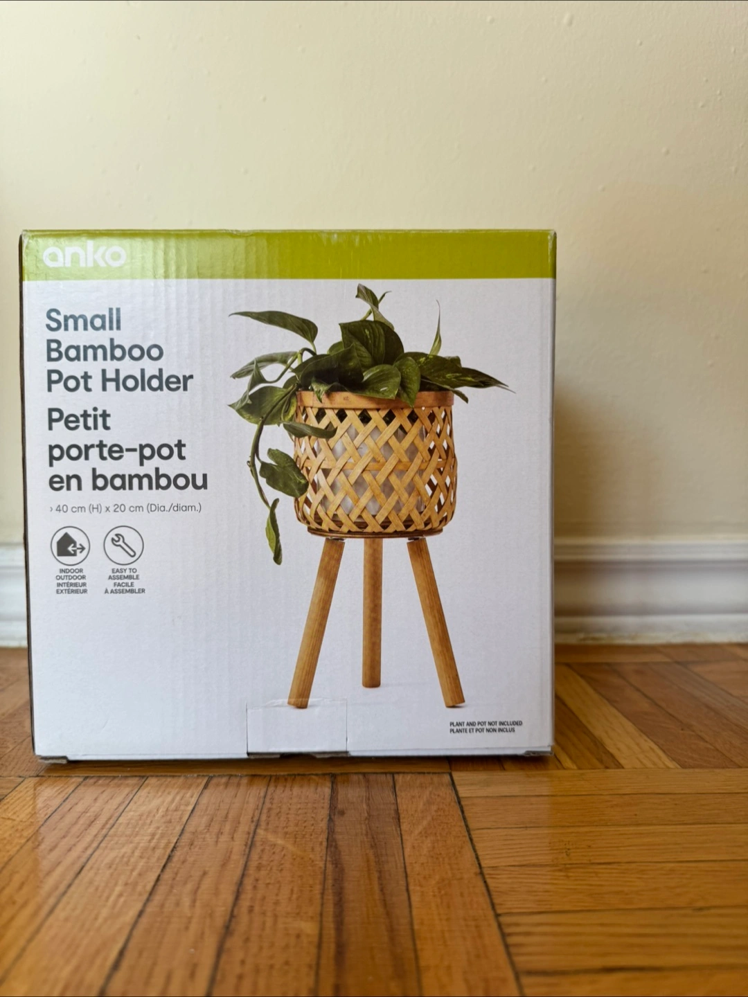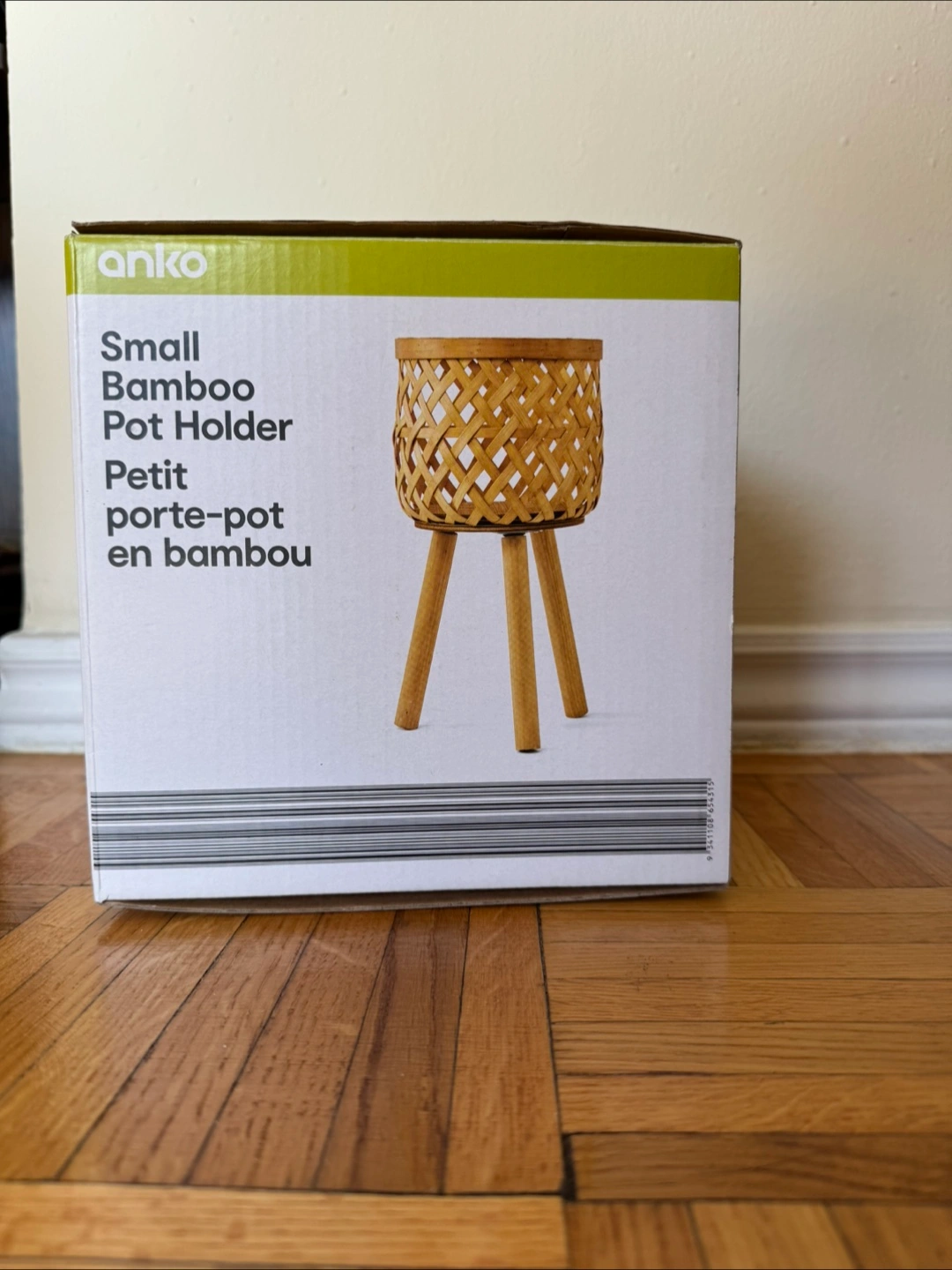 Selling a cute Anko small bamboo pot holder! It's in great condition and comes with all the pieces, including the legs. The box is also included. It's perfect for adding a touch of nature to your home!