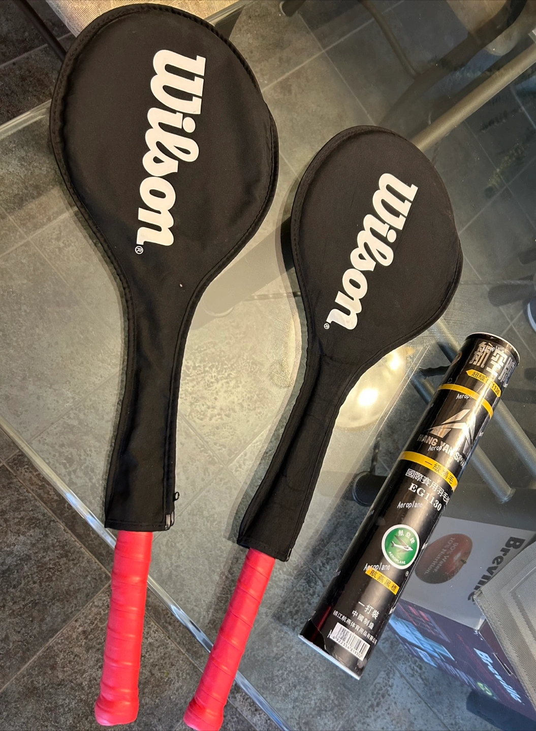 $70 for 2 Rackets (with Wilson 3/4 Covers) and 10 Assorted YONEX Shuttlecocks (Used/New, Yellow/White, Mid/Slow Speed)