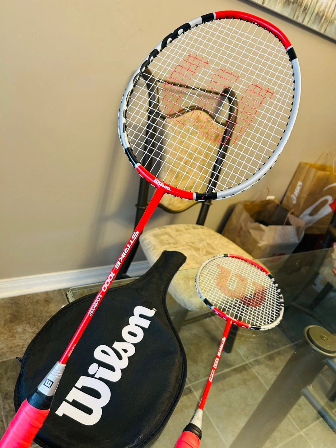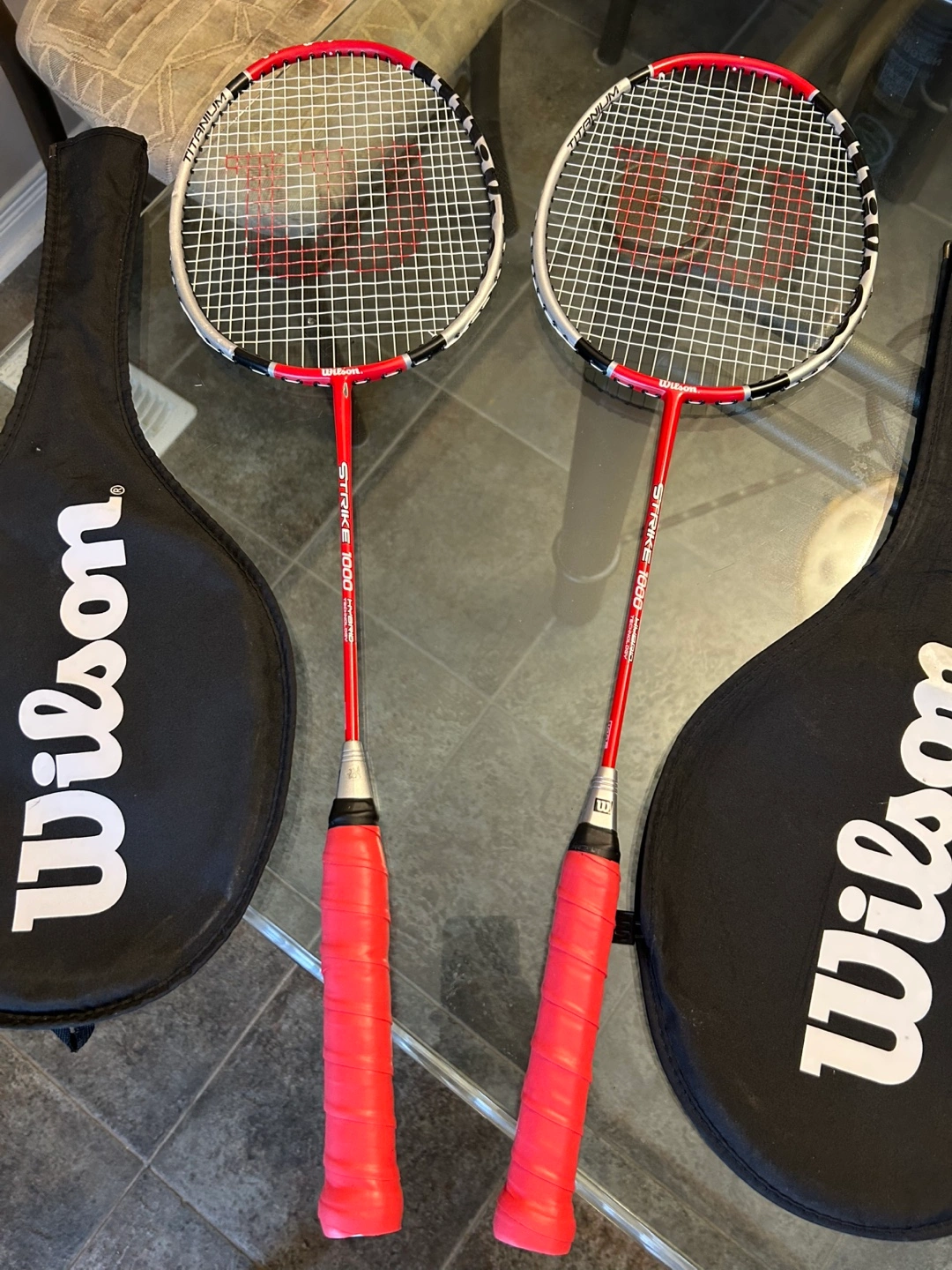 Wilson Strike 1000 Hybrid Badminton Racquests in Good Shape (Paint Faded on Frame Tops), Good for Progress Beginners.