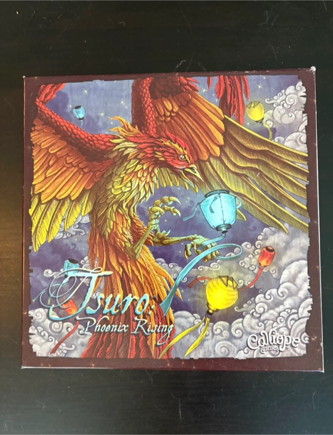 A copy of Tsuro: Phoenix Rising board game. It's a beautiful game with stunning artwork. Great for family game nights!