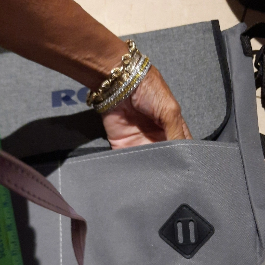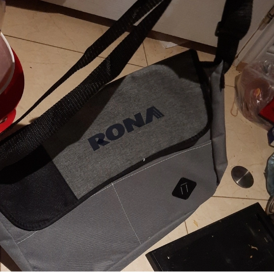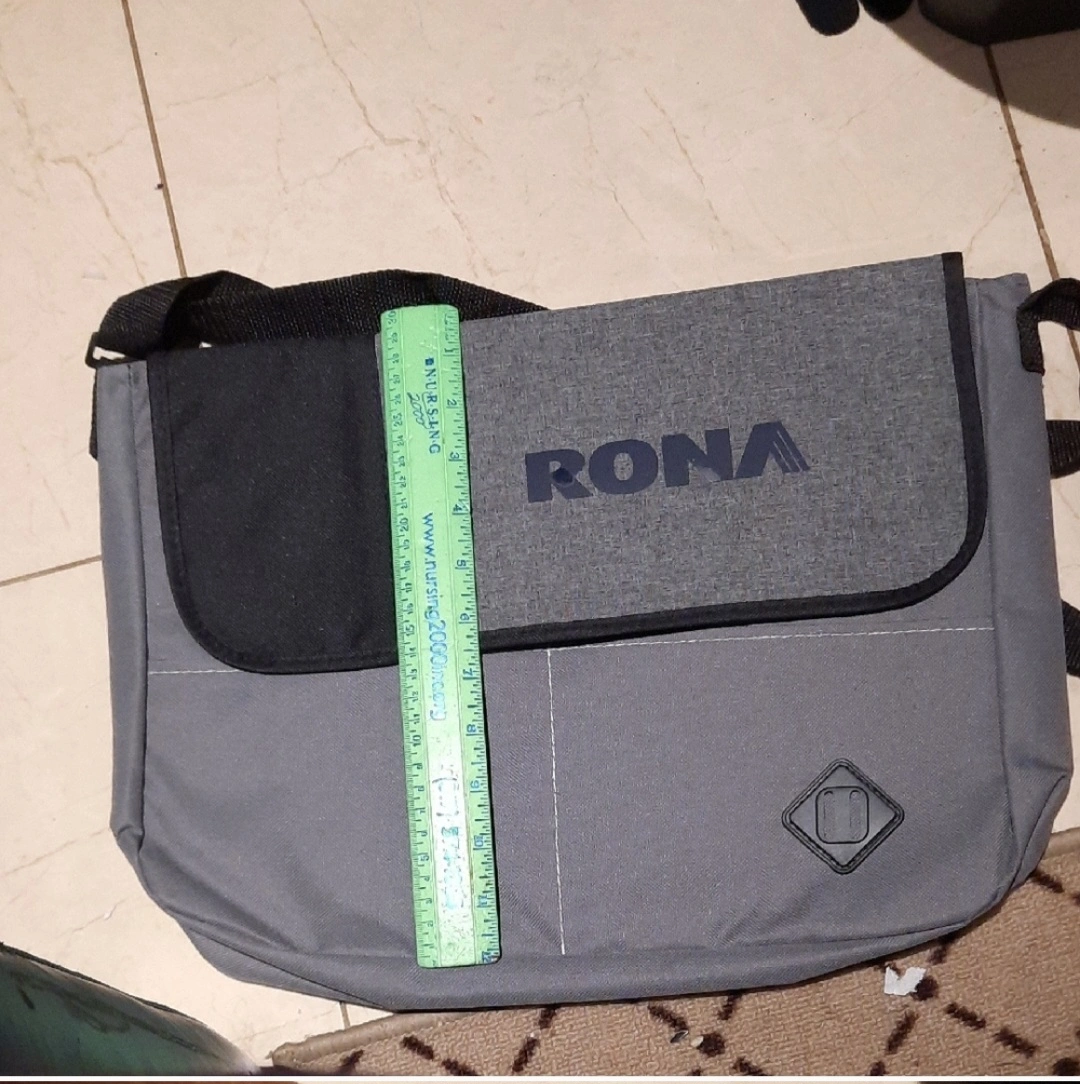 This is a Rona messenger bag in grey. It has a black strap and black accents. It's in good condition and ready for a new home