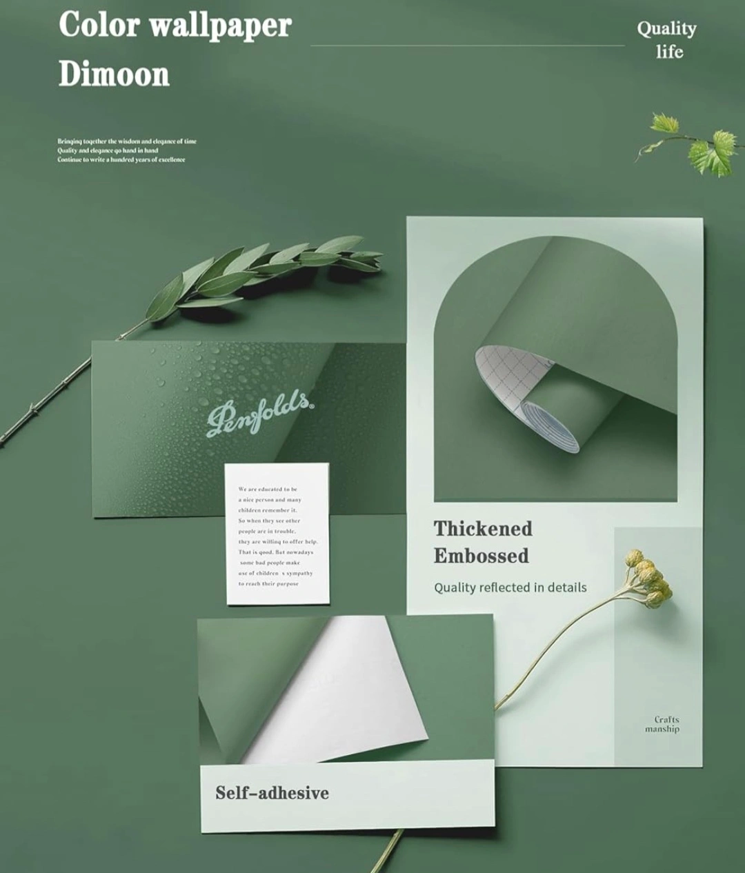 70I'm selling a roll of dark green wallpaper. 236''x17.7'' covers 28.93 sq.ft. Waterproof. New.