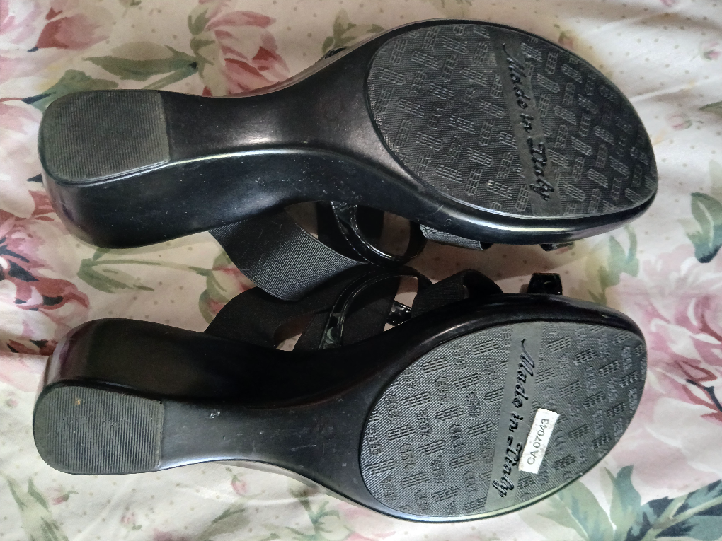These black sandals are in great shape and ready for a new home! They're a size 8 and feature a stylish strap design. Made in Italy perfect for adding a touch of elegance to your summer outfits!