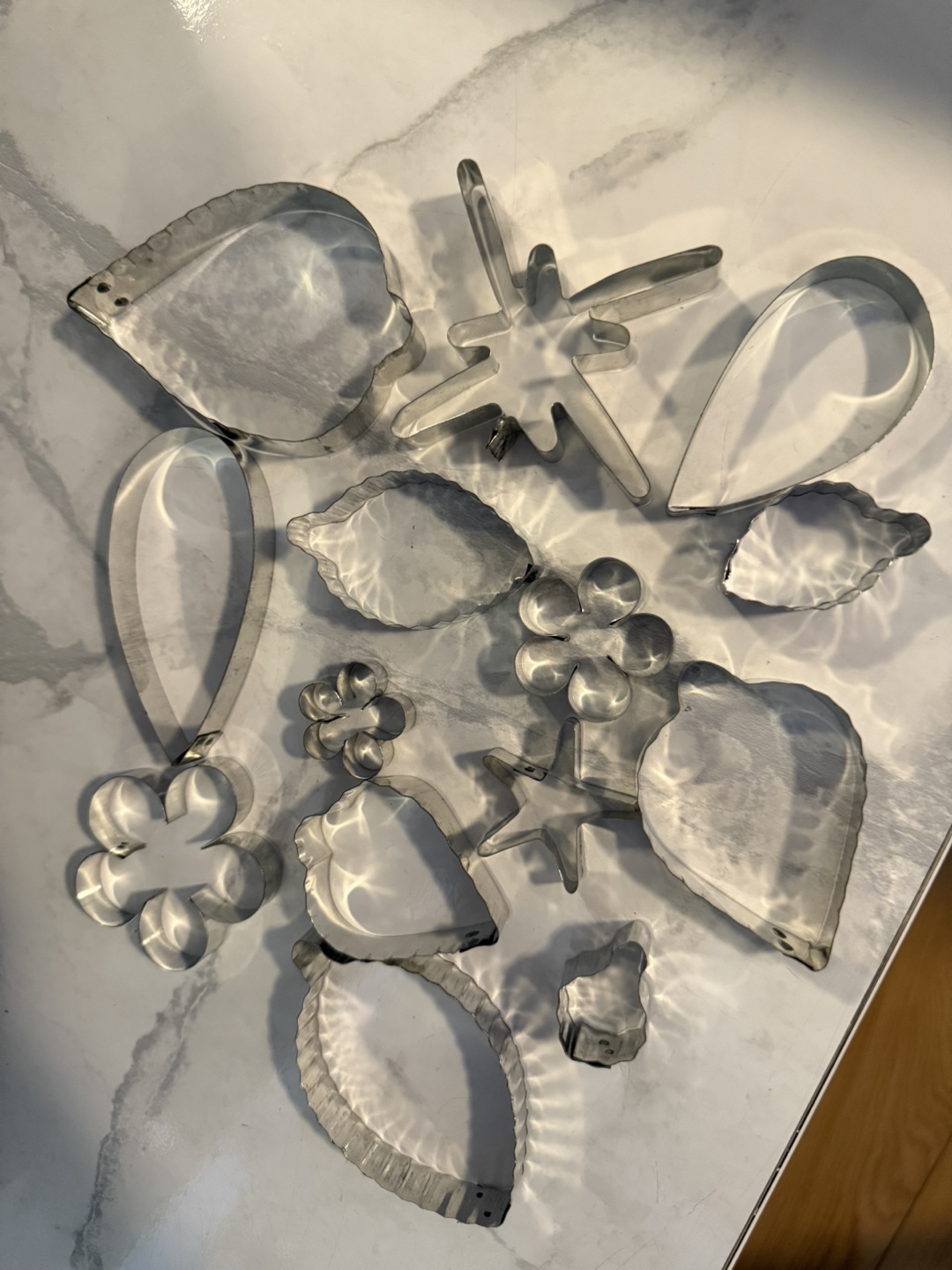 set of assorted craft cutters in various shapes! Thin metal ideal for ceramic or playdough crafts. Great condition.