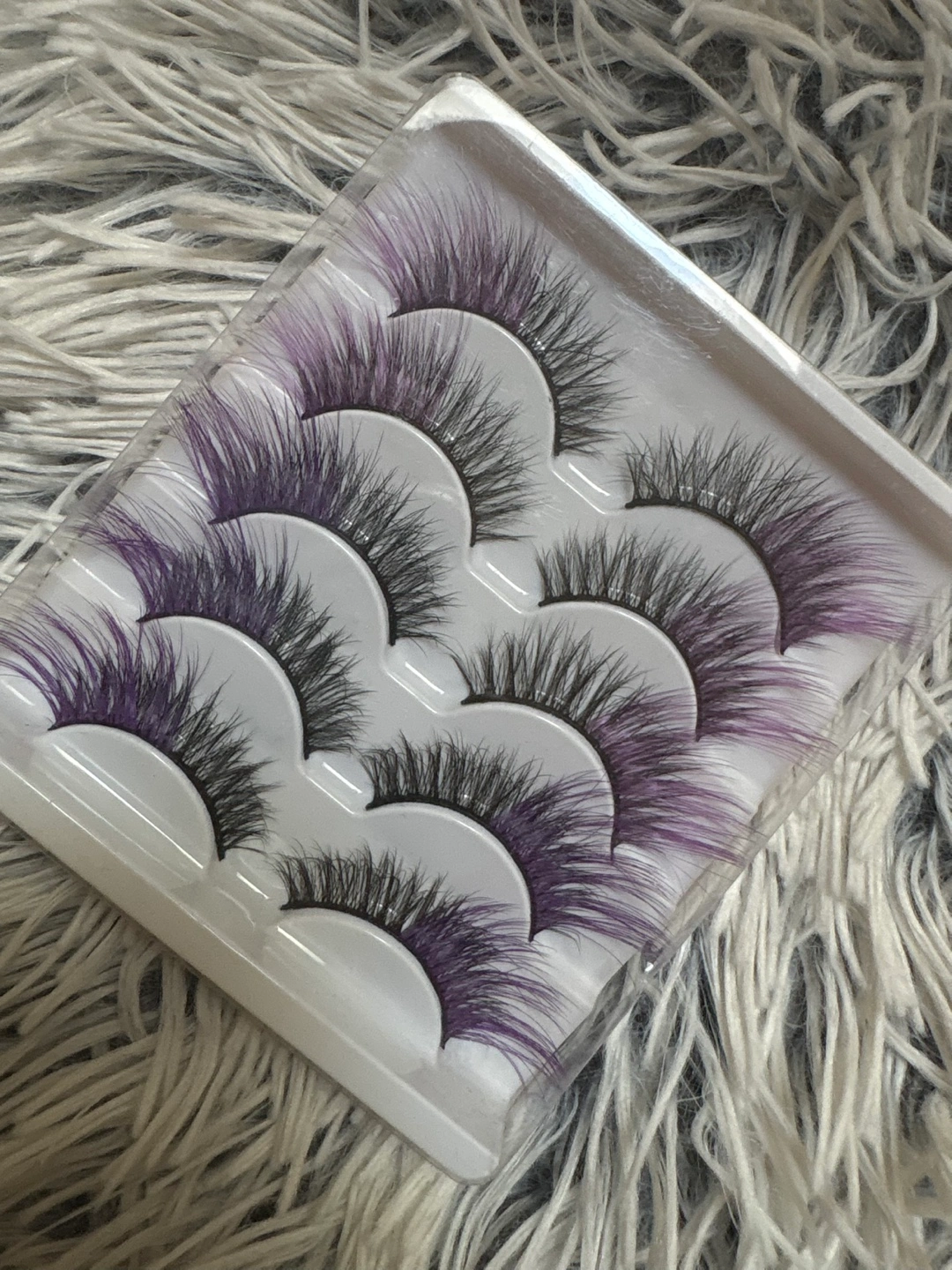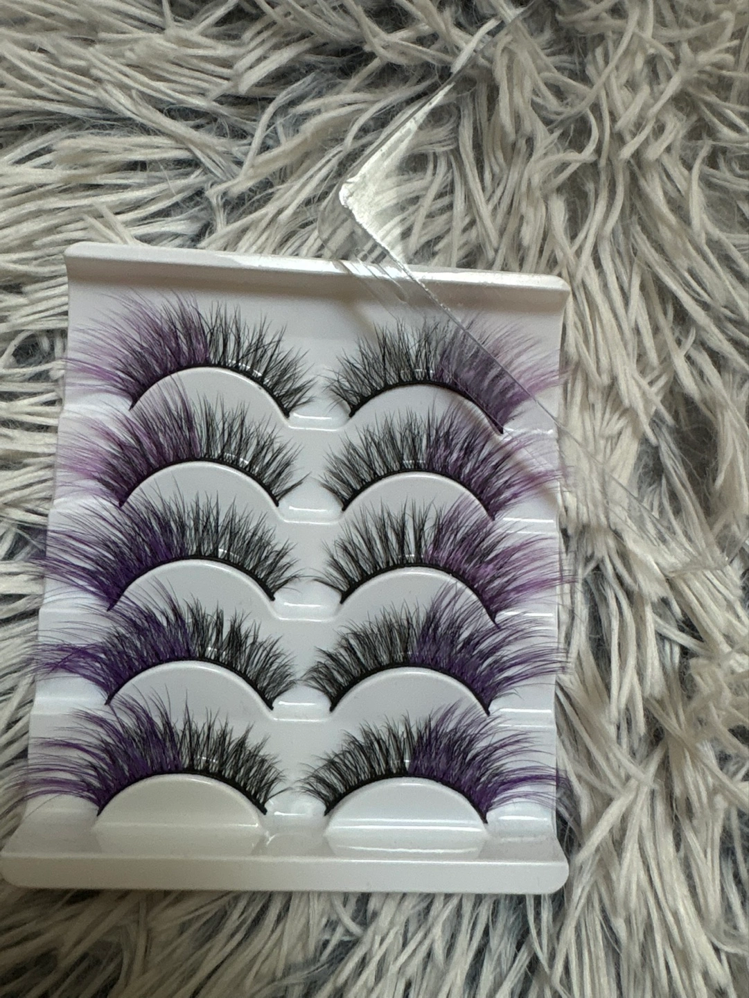 Selling a set of false eyelashes with fun purple accents! They're brand new and ready to add a pop of colour to your look