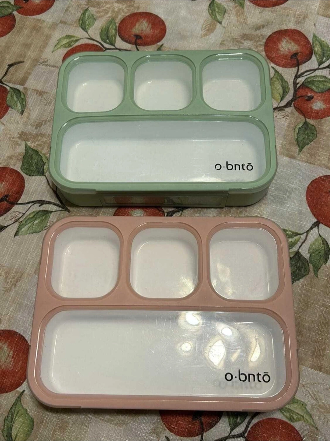 Selling 2 o.bento lunch boxes. One is green and the other is pink. They have a compartment design to keep your food separate and organized. Perfect for packing lunches for school or work!