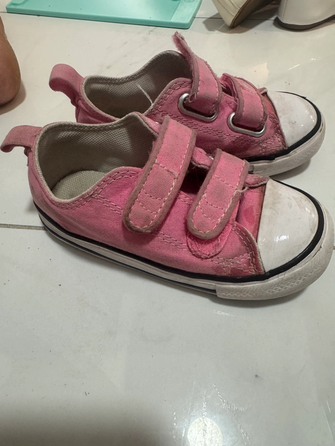 Selling a pair of Converse sneakers in pink. They are a toddler size 7. All good just need to be wiped