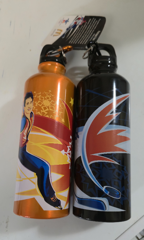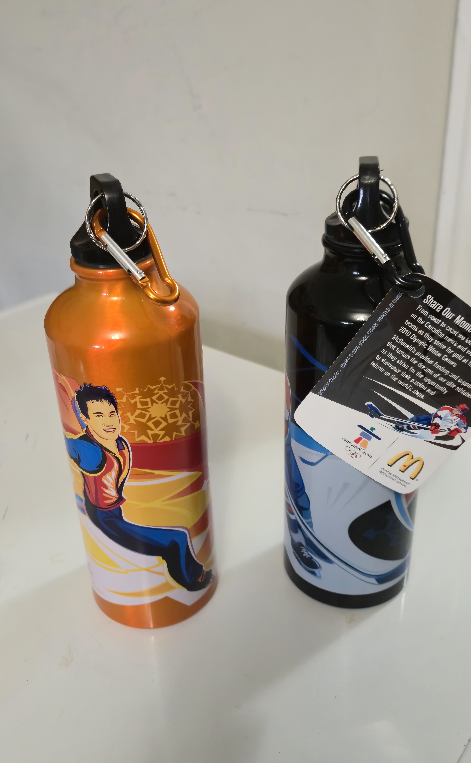 Selling a set of two McDonald's Olympic-themed water bottles! One features a figure skater and the other has a hockey design. Perfect for any sports fan or collector!