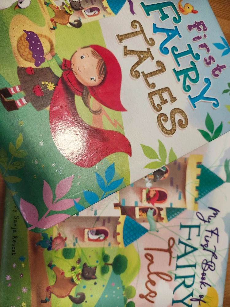 Two lovely fairy tale books for kids! One is titled 'First Fairy Tales' and the other is 'My First Book of Fairy Tales'. Perfect for bedtime stories. One book have writing in the cover