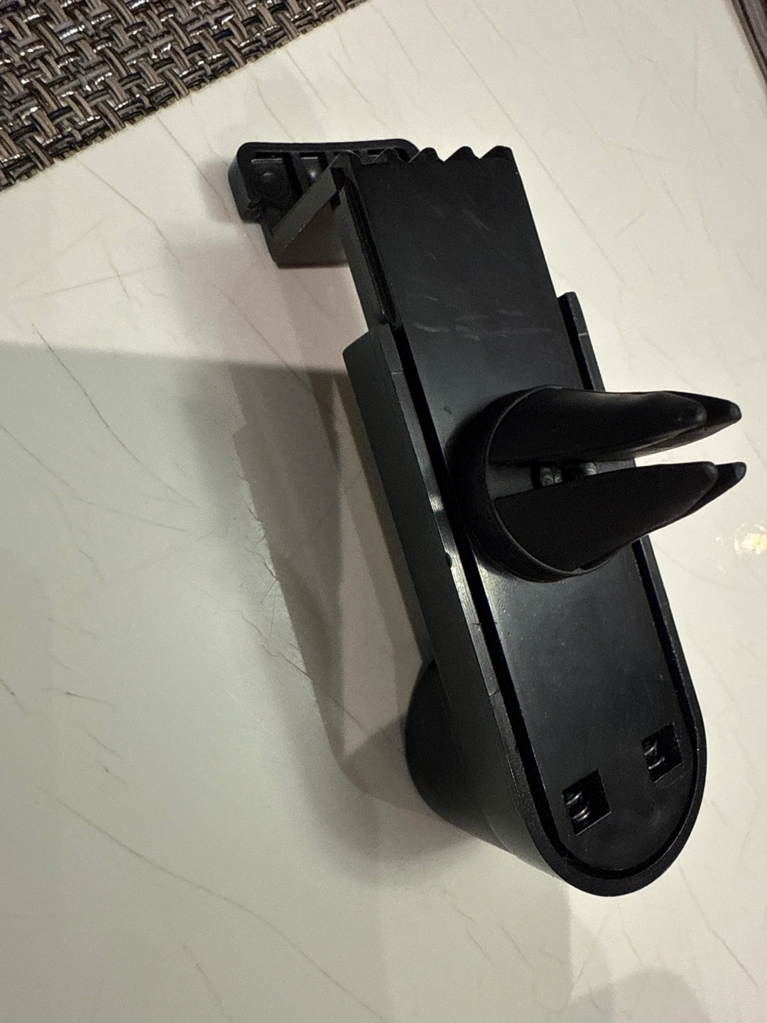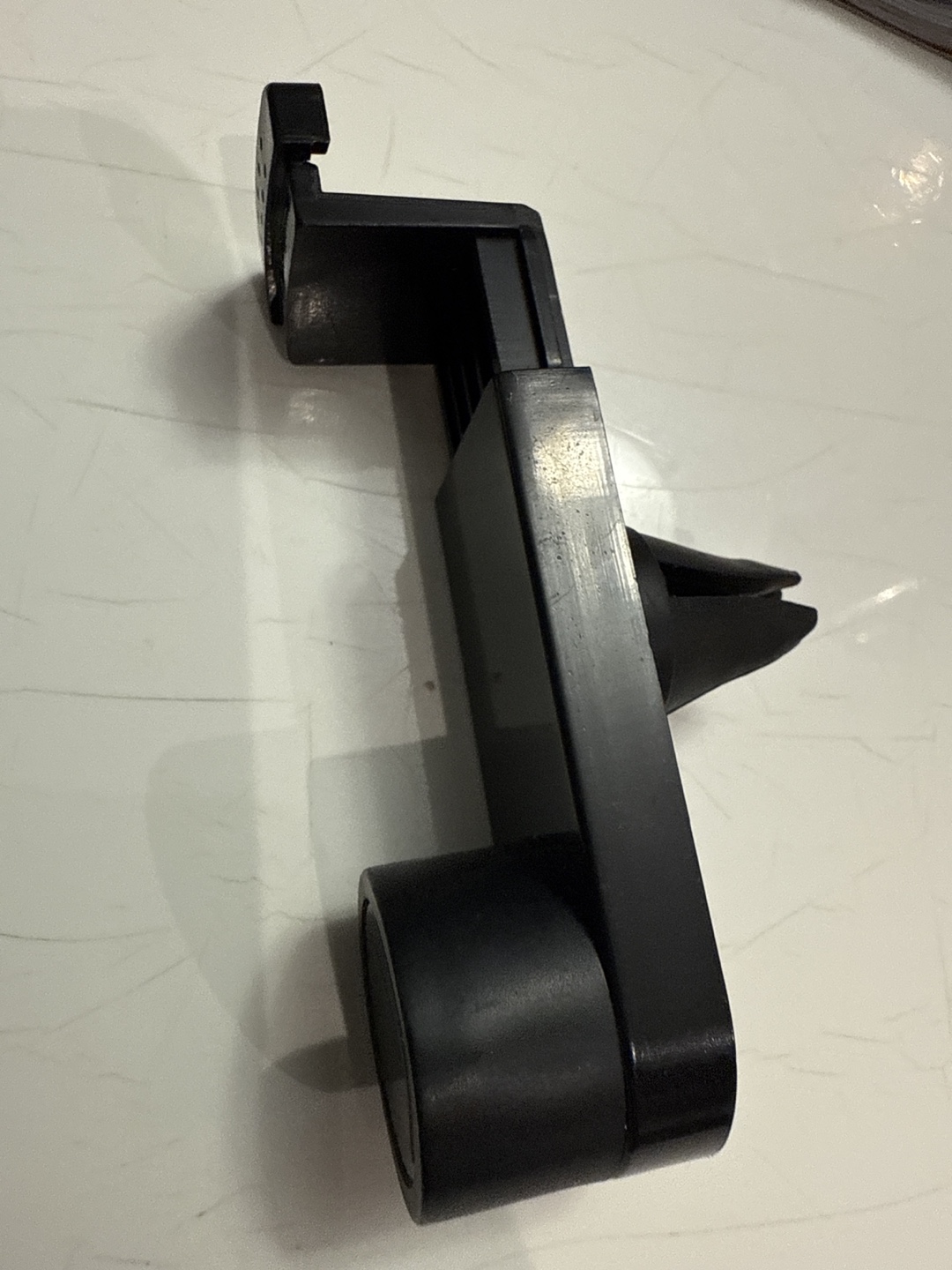 universal car air vent phone holder in black. It's in great condition and ready to use! This handy gadget easily clips onto your car's air vent, providing a secure spot for your phone while you drive. Perfect for hands-free navigation and calls!