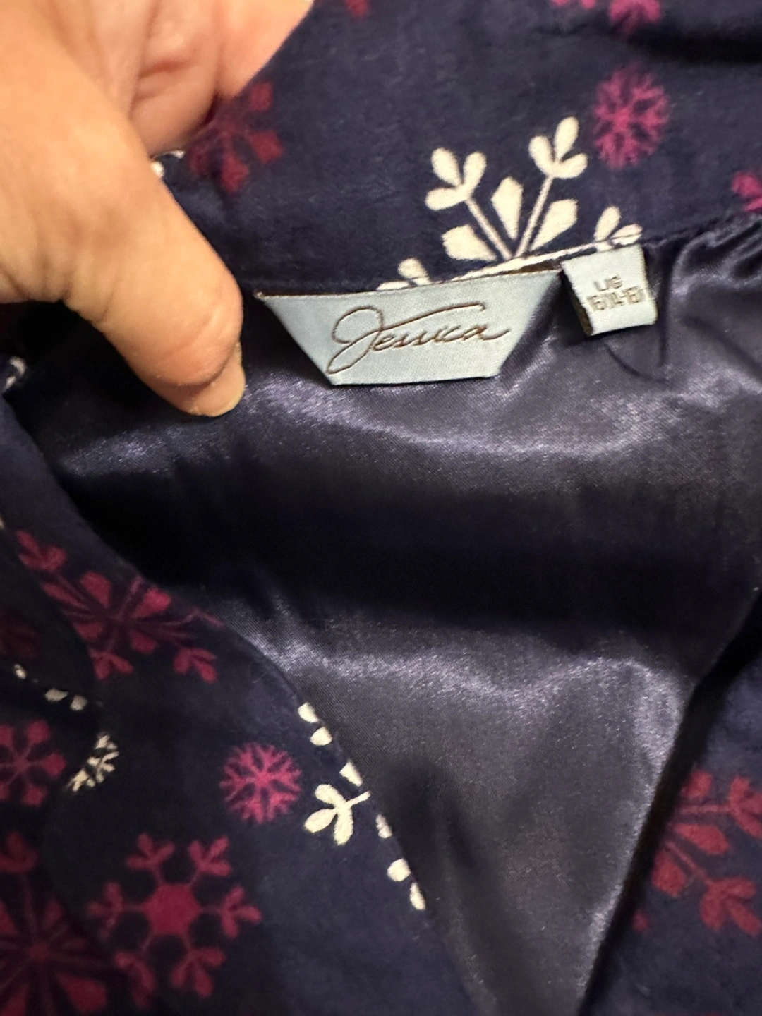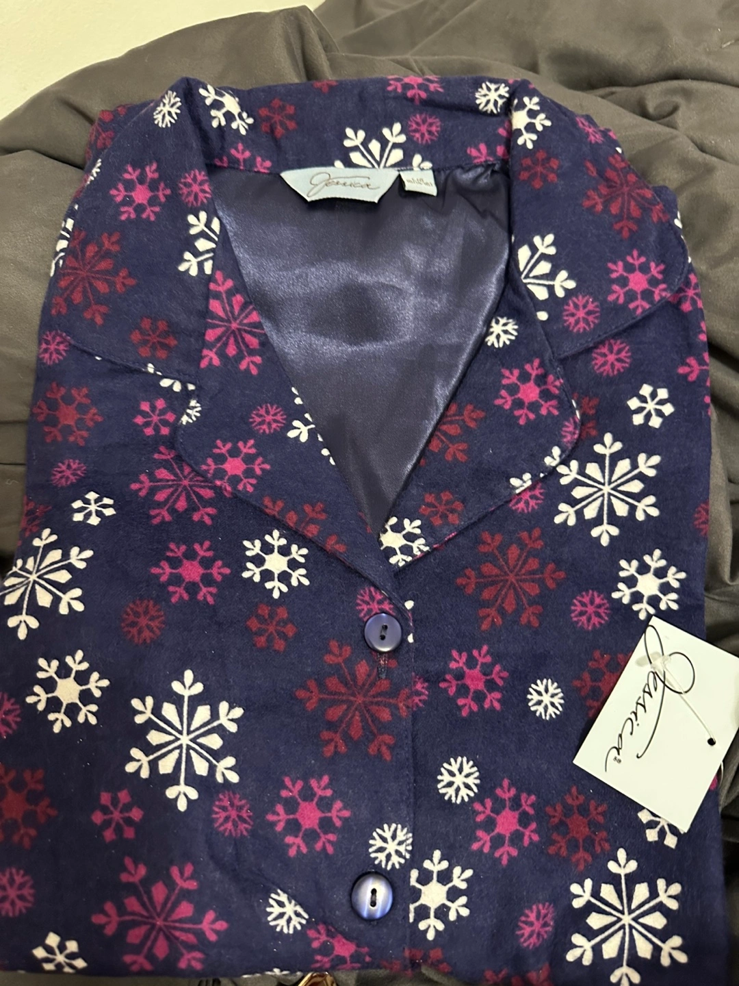 153This is a cozy Jessica pyjama set, perfect for those chilly nights! The set is a size US 16-18 and features a lovely snowflake pattern. New with tags. I’m by The Shops at Don Mills. I happily accept cash payments only, and just a quick note: I can't hold items. Thank you for understanding!